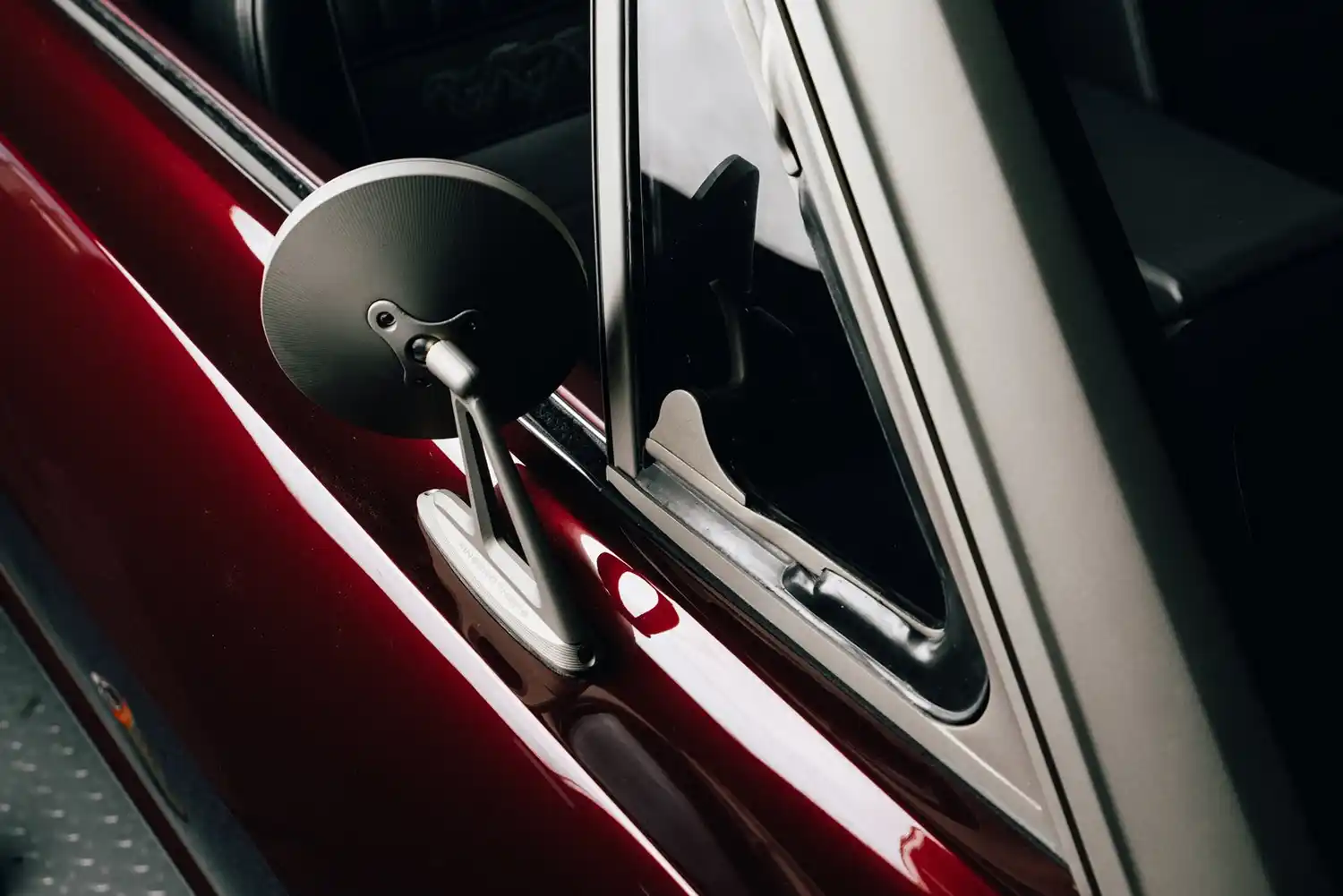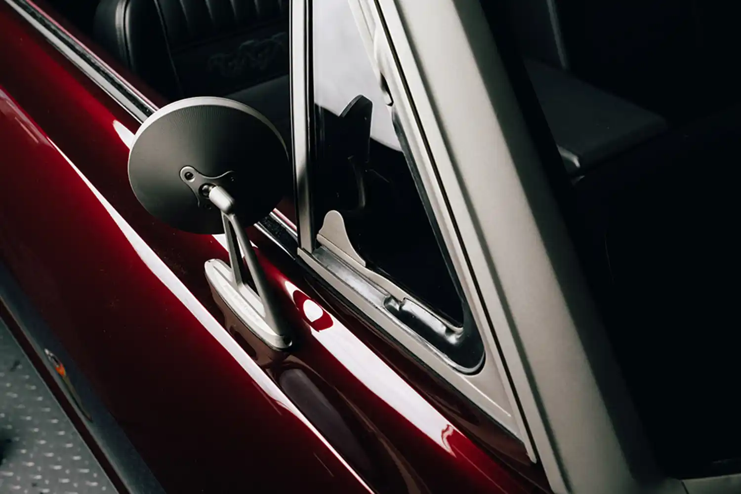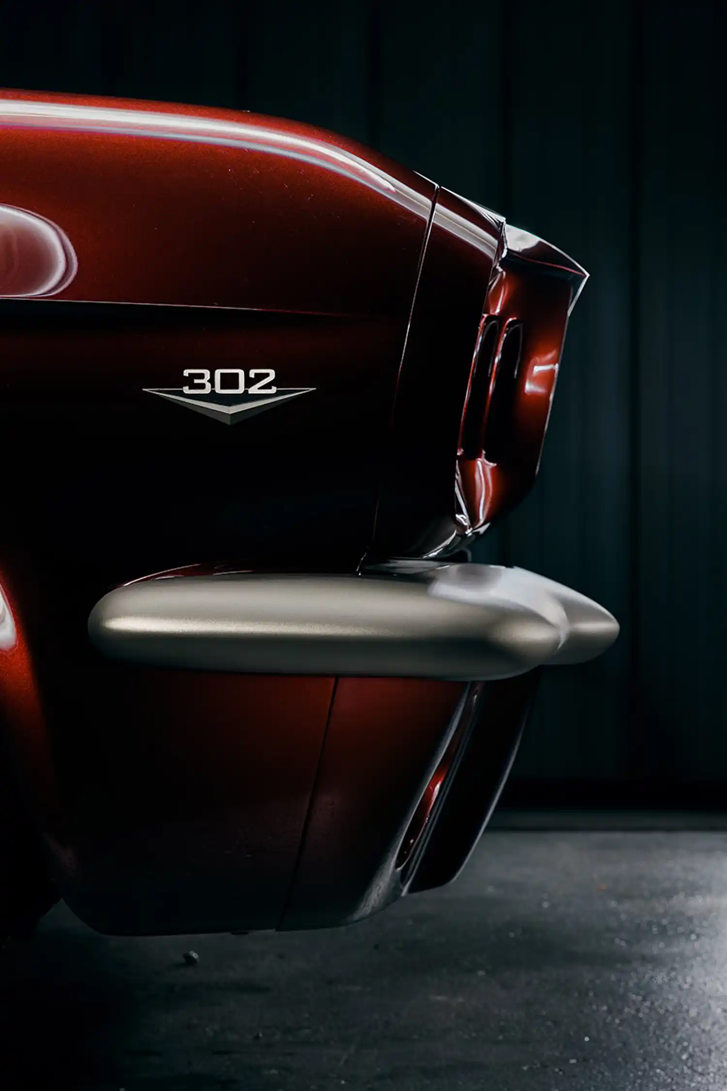 Born from an original 1964.5 Mustang convertible, nearly every component is a Ringbrothers-built one-off piece, with the only factory Mustang parts being the center caps for the wheels. The Ringbrothers team conducted extensive metalwork converting the Roadster Shop FAST TRACK chassis back into a unibody, as well as widening and lengthening the bodywork by one inch. The BASF Glasurit “Burgundy Brave” finish was then applied, and all the chrome and stainless-steel trim was treated with Cerakote Titanium C-105P.