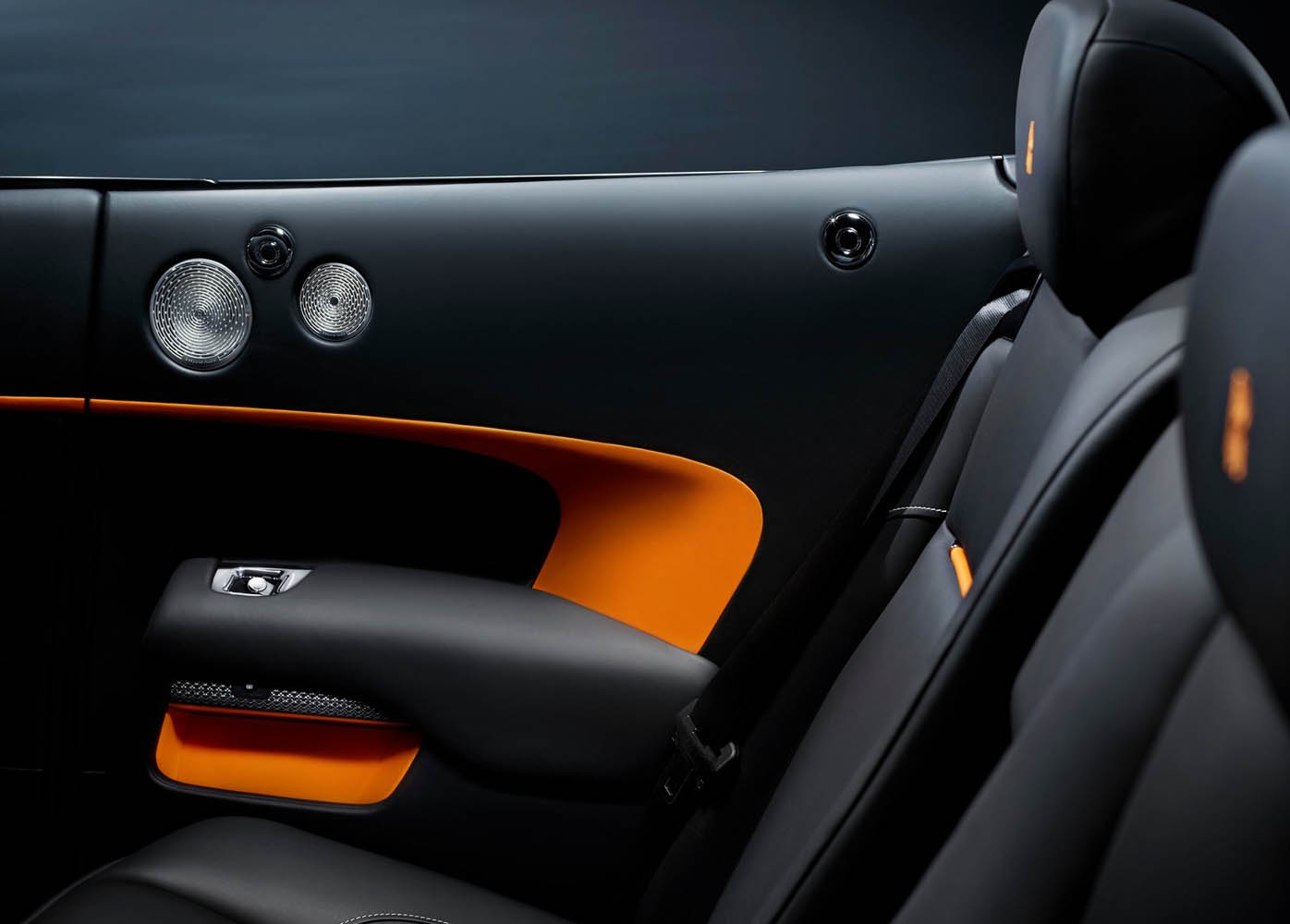 Reflecting the marque’s Bespoke philosophy, Rolls-Royce Dawn Black Badge also plays host to a new interior palette break-up. Higher levels of exquisite Black leather are accented boldly with Mandarin highlights, including a strip of orange highlight which encircles the cabin at hip- , evocative of the sunset before the passengers are immersed in darkness.