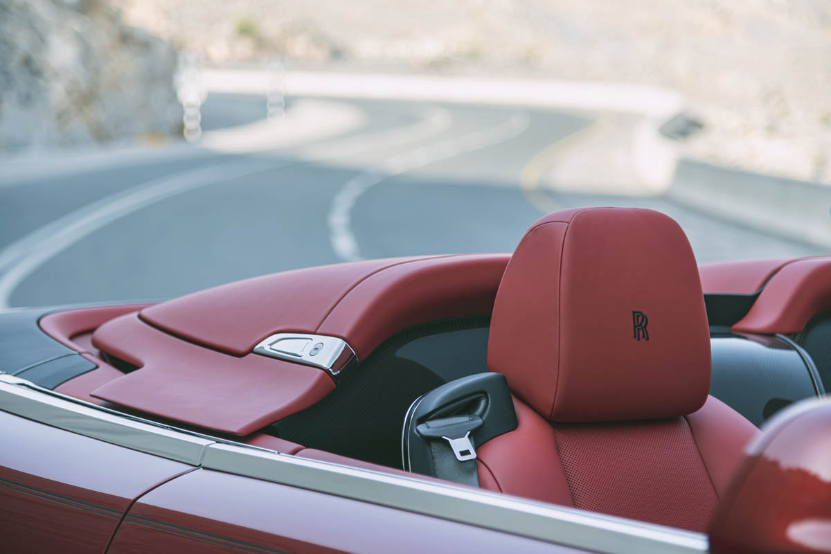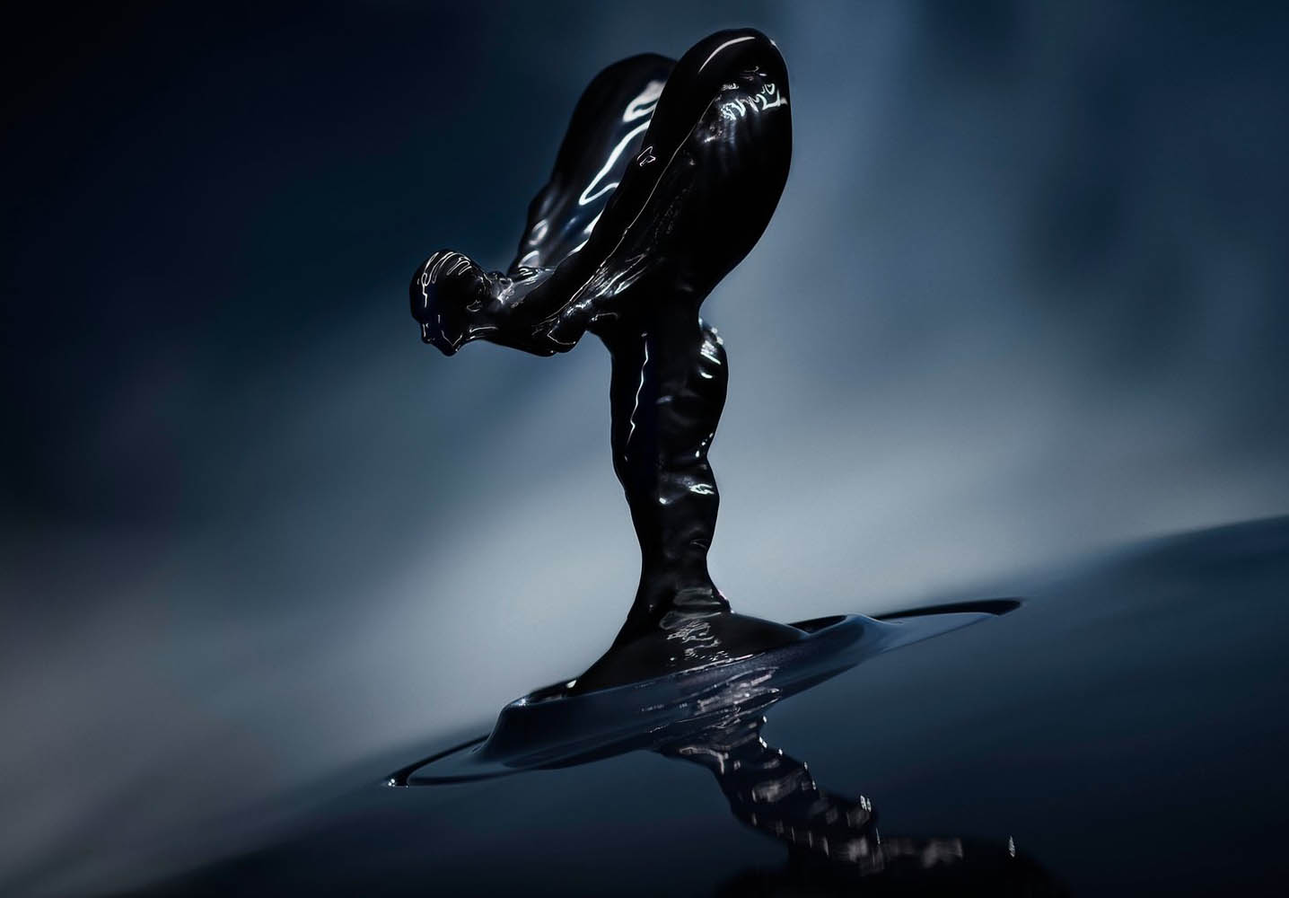 The Spirit of Ecstasy – itself a mascot that has taken many different forms throughout the marque’s history – transforms into a high-gloss vamp, finished in a perfectly executed black chrome. This transformation to a darker aesthetic extends to certain chrome surfaces including the front grille surround, boot lid finisher, exhaust pipes and air inlet finisher. The effect is an authentic transformation that speaks of a bolder, more confident sensibility. Finally, the ‘Double R’ signifiers on the Rolls-Royce badges are inverted in colour, confirming the creation of a true alter-ego of the marque.