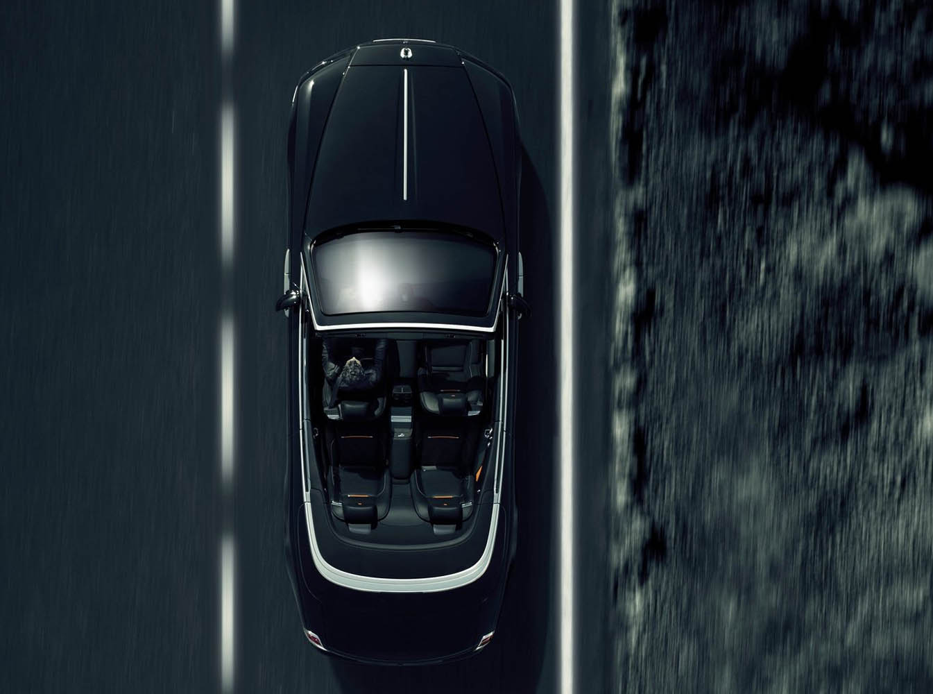 The Rolls-Royce Dawn Black Badge was presented in a deeply intense shade of black. Multiple layers of paint and lacquer have been fastidiously applied and hand-polished in a process that amounts to the most exhaustive painting and polishing process ever used for a solid paint colour. The result clothes Dawn’s sensuous lines in the deepest, darkest and most intense black to ever grace a production car surface. The roof, which opens in a ‘Silent Ballet’ to allow in the sounds of the night, is also only available in black canvas, whilst the rear deck is finished in black leather.