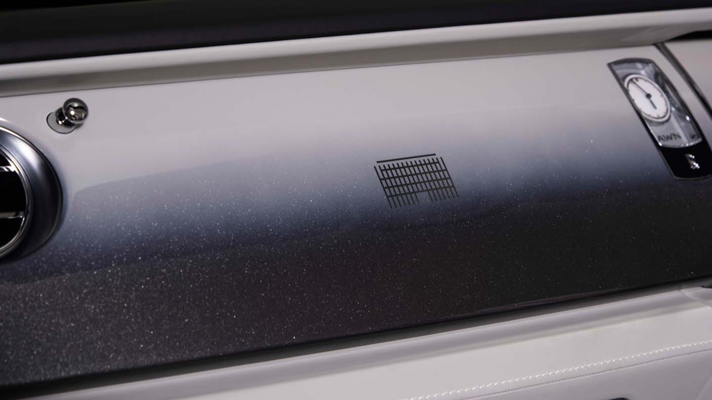 Into the fascia is set a stainless steel inlay of ‘The Kita’s’ logo, the most delicate example of such an inlay that the Rolls-Royce Bespoke Collective has produced and a gesture of solidarity with the great skill that went into crafting the residence’s unique hand-finished stainless steel fittings. The same lattice motif is applied in embroidery to the front headrests and the waterfall between the rear seats. Final touches include a specially designed Bespoke clock and Bespoke umbrellas colour matched to the interior, reflecting the discerning tastes of the architect.