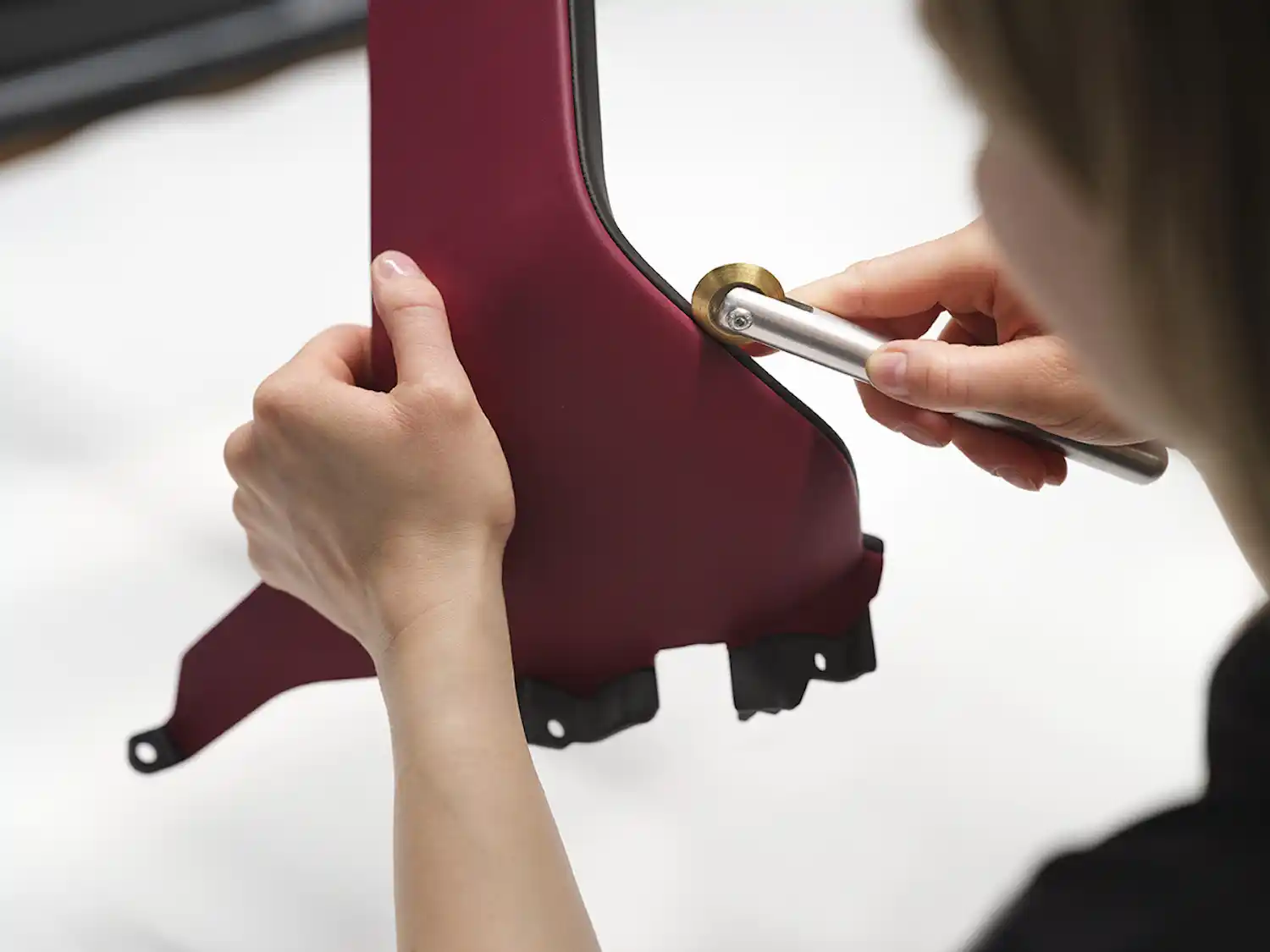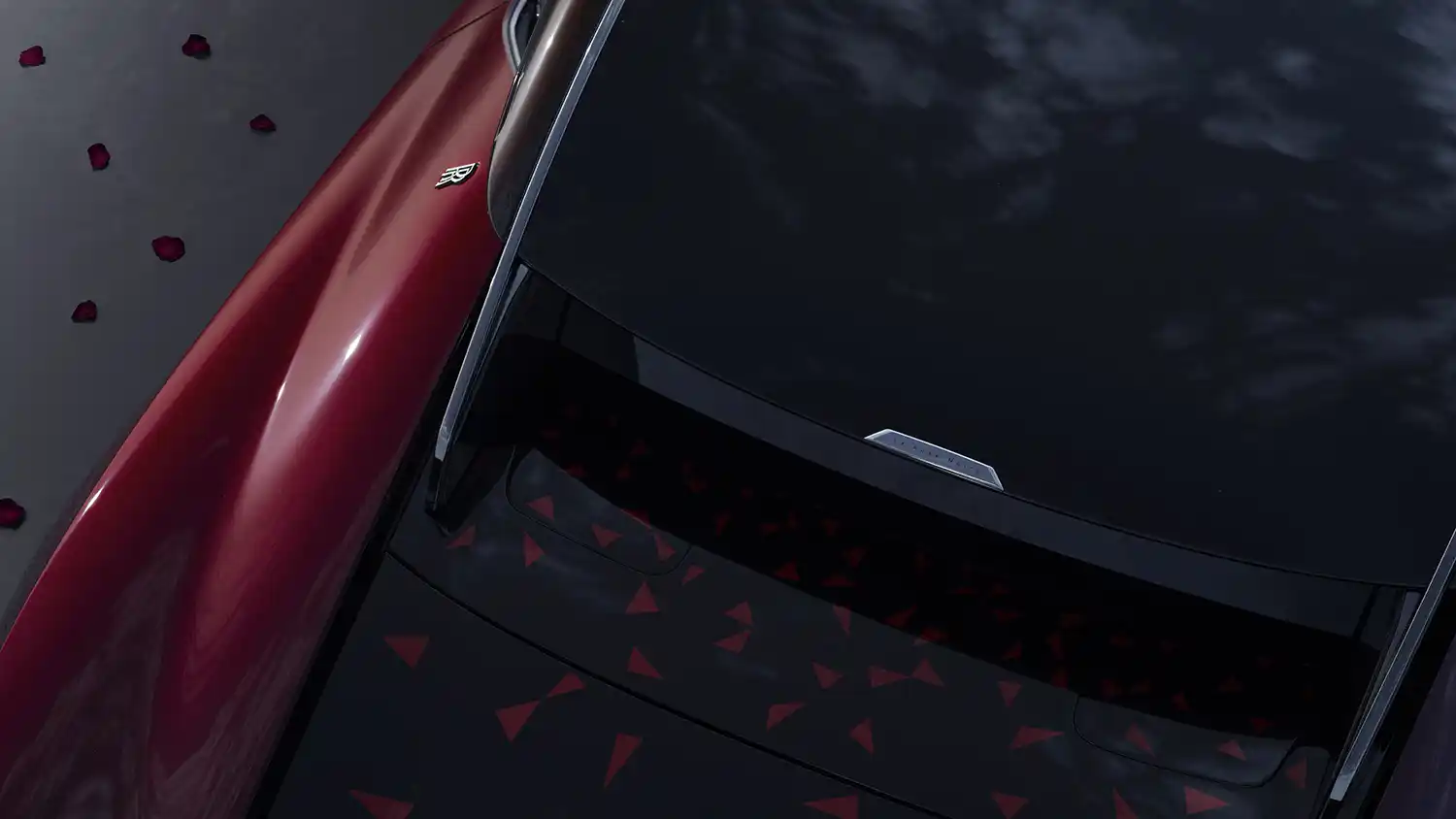 The exterior coachwork is finished in the lustrous and complex True Love red. Like the Black Baccara rose, the motor car also appears to change colour depending on the point it is examined from. To achieve this rich variation, surface finish specialists developed a completely new paint process, which was perfected over 150 careful iterations. A base coat, the colour of which is a closely guarded secret, was followed by five layers of clear lacquer, each blended with a slightly different tone of red.