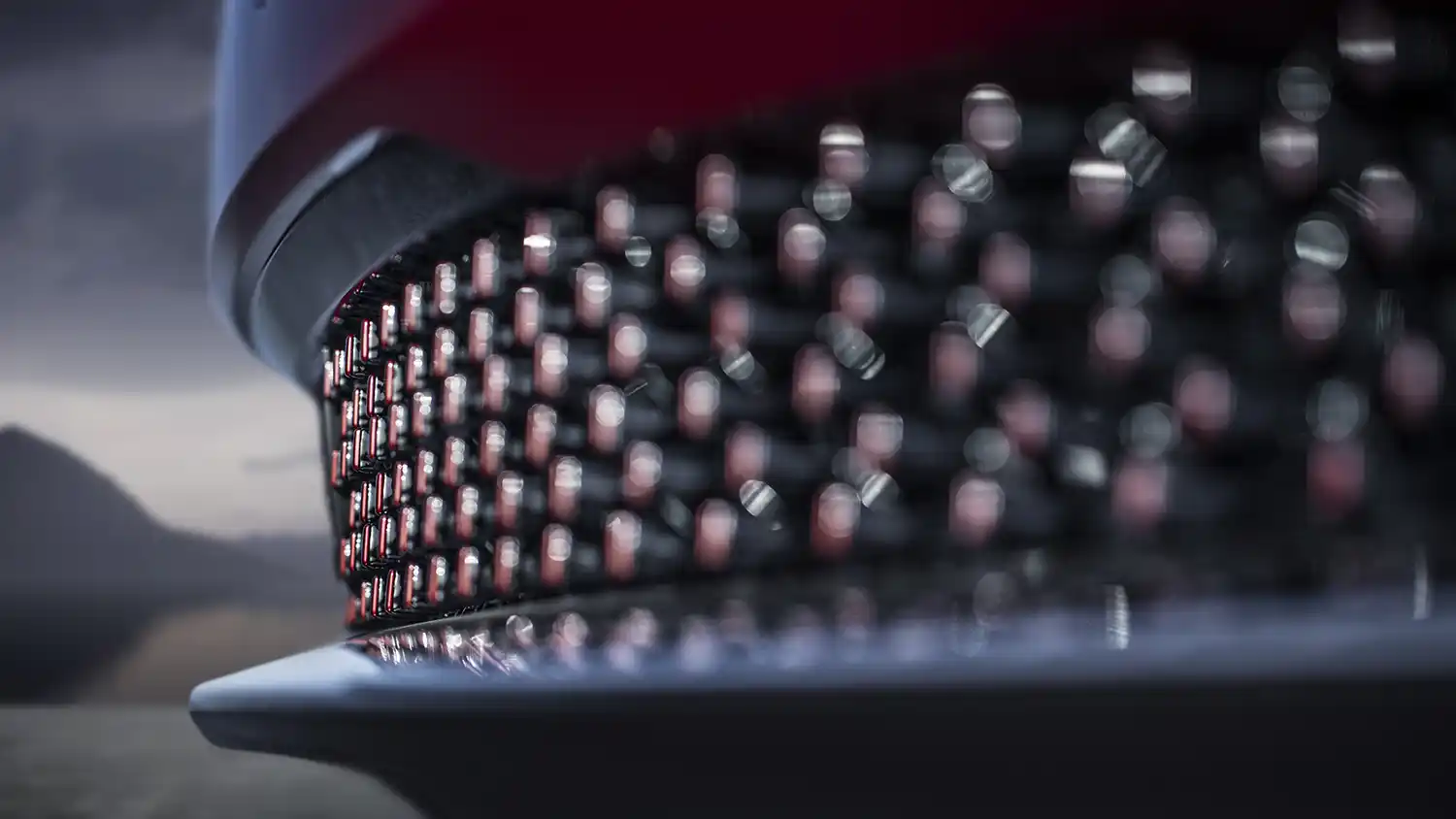 This subtle flourish continues into the intricate lower front air intake. This highly detailed piece was digitally designed and 3D printed in a lightweight composite and incorporates 202 hand-polished stainless-steel ingots, each hand-painted in the True Love hue.