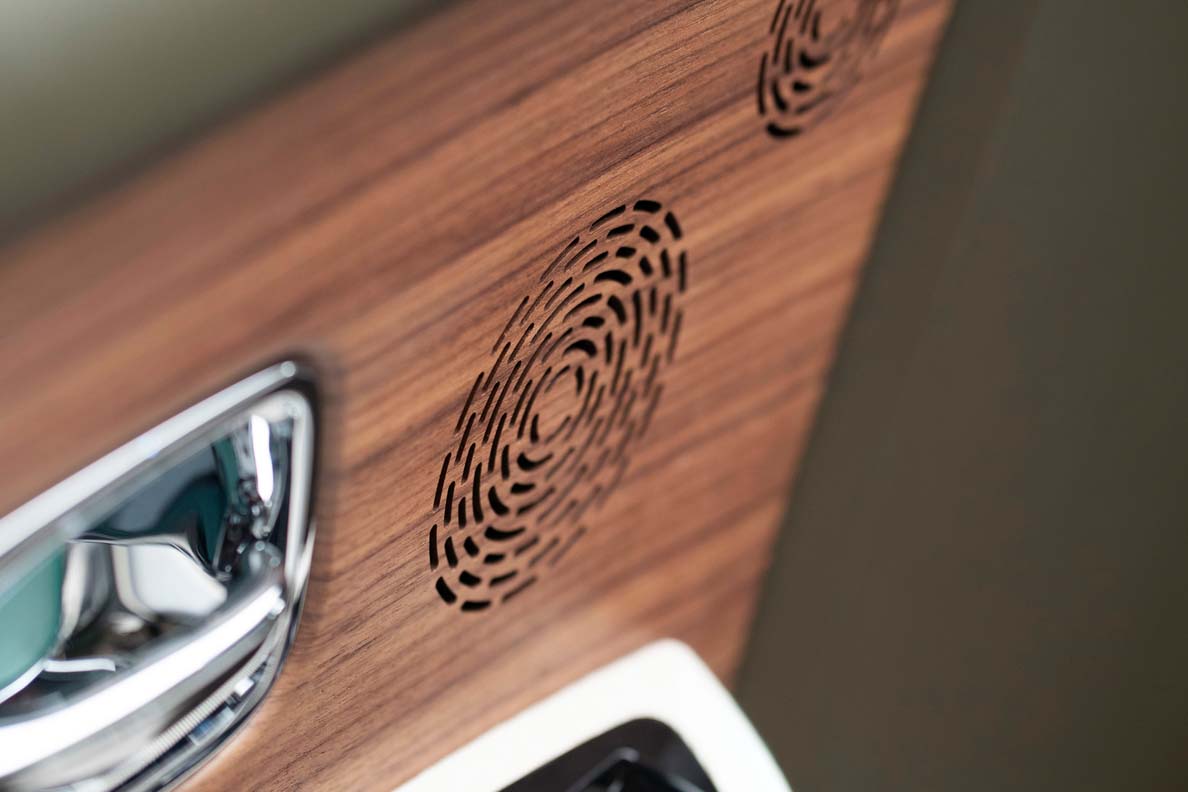 The interior is also replete with examples of Rolls-Royce Bespoke design and handcraftsmanship. Wooden speaker frets, for example, are formed by meticulously perforating the Open Pore Royal Walnut veneer applied to the doors, creating a seamless, textured aesthetic and delicate haptics. Open Pore Royal Walnut is additionally applied to the centre and rear consoles and picnic table backs; in another first for Rolls-Royce, the interior features Hermès ‘Toile H’ canvas on the door armrests, centre and rear consoles and, most notably, the signature headliner.
