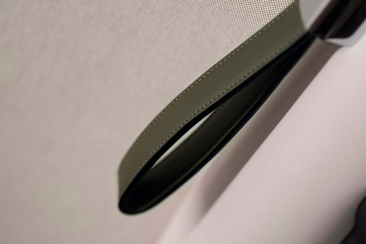 Delicate Hermès piping adorns the headrest cushions and calf supports of the rear seats, while soft Seashell White accents and matching lambswool floor mats create a sense of light and space throughout.