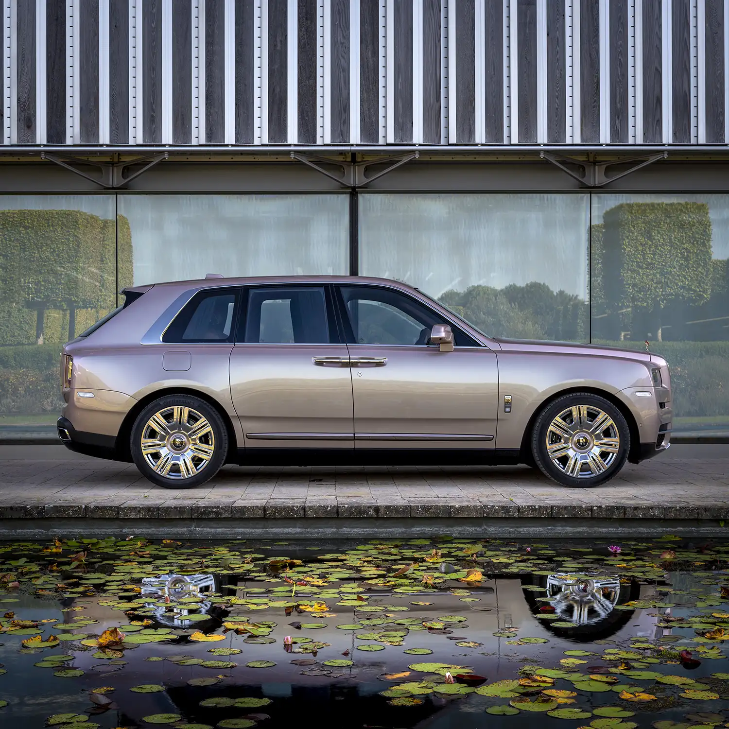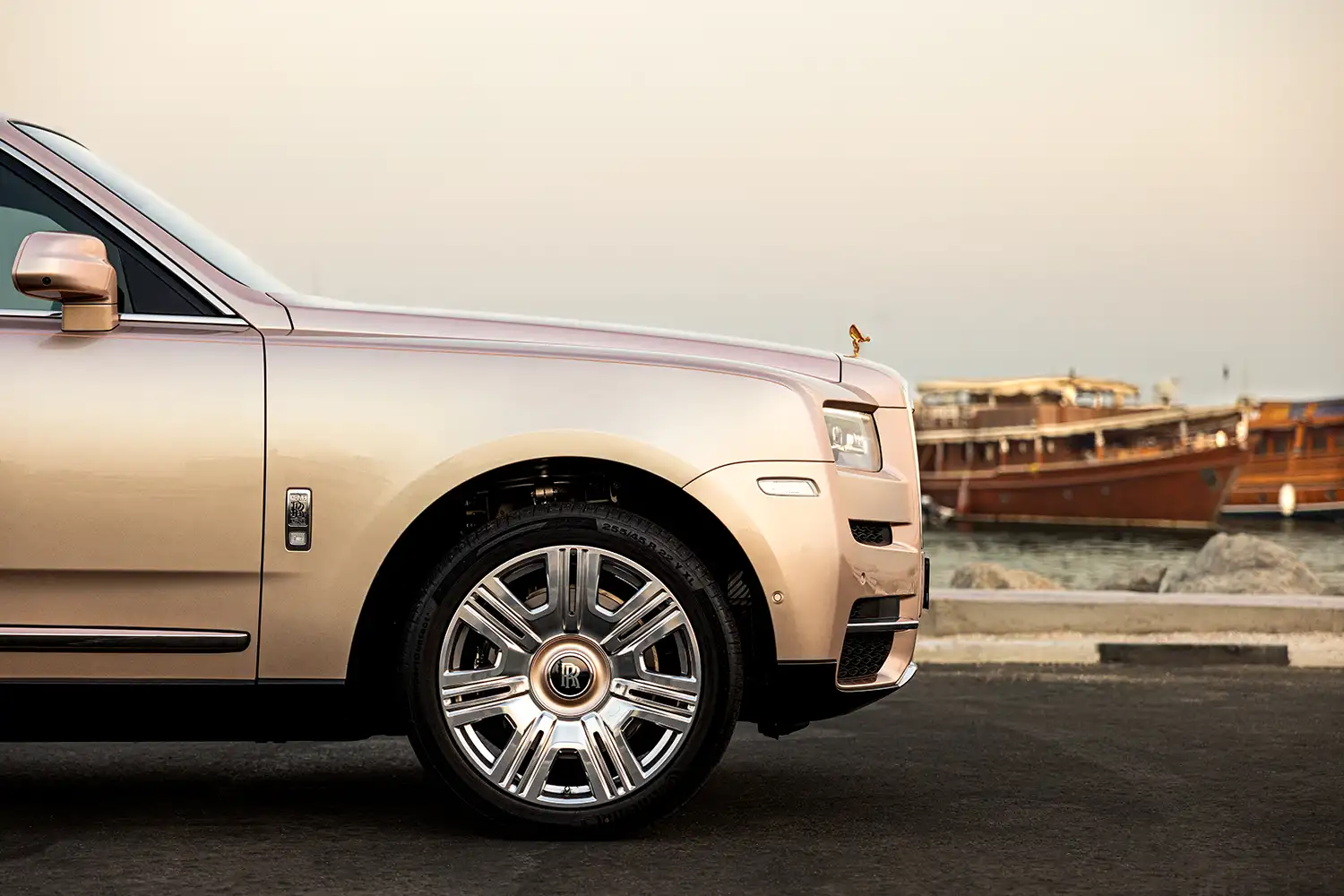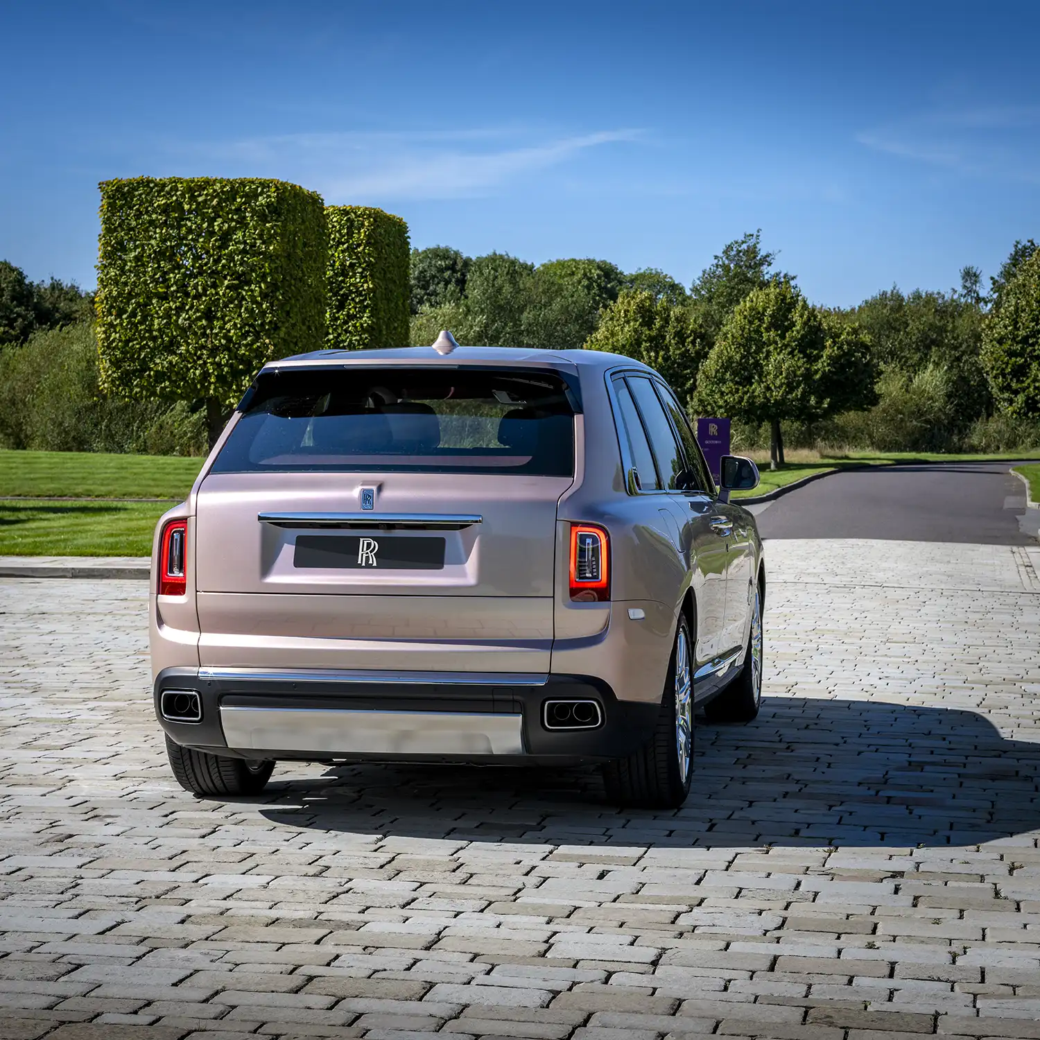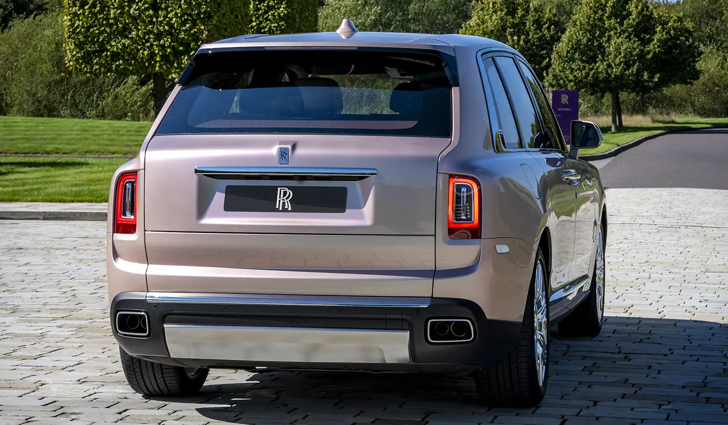 The Pearl Rose finish is complemented with a single coachline, applied by hand in Rose Gold paint, to match the rose gold-plated Spirit of Ecstasy mascot. The rose gold theme also extends to the Bespoke treadplates, which are revealed on each of the four door sills upon opening.