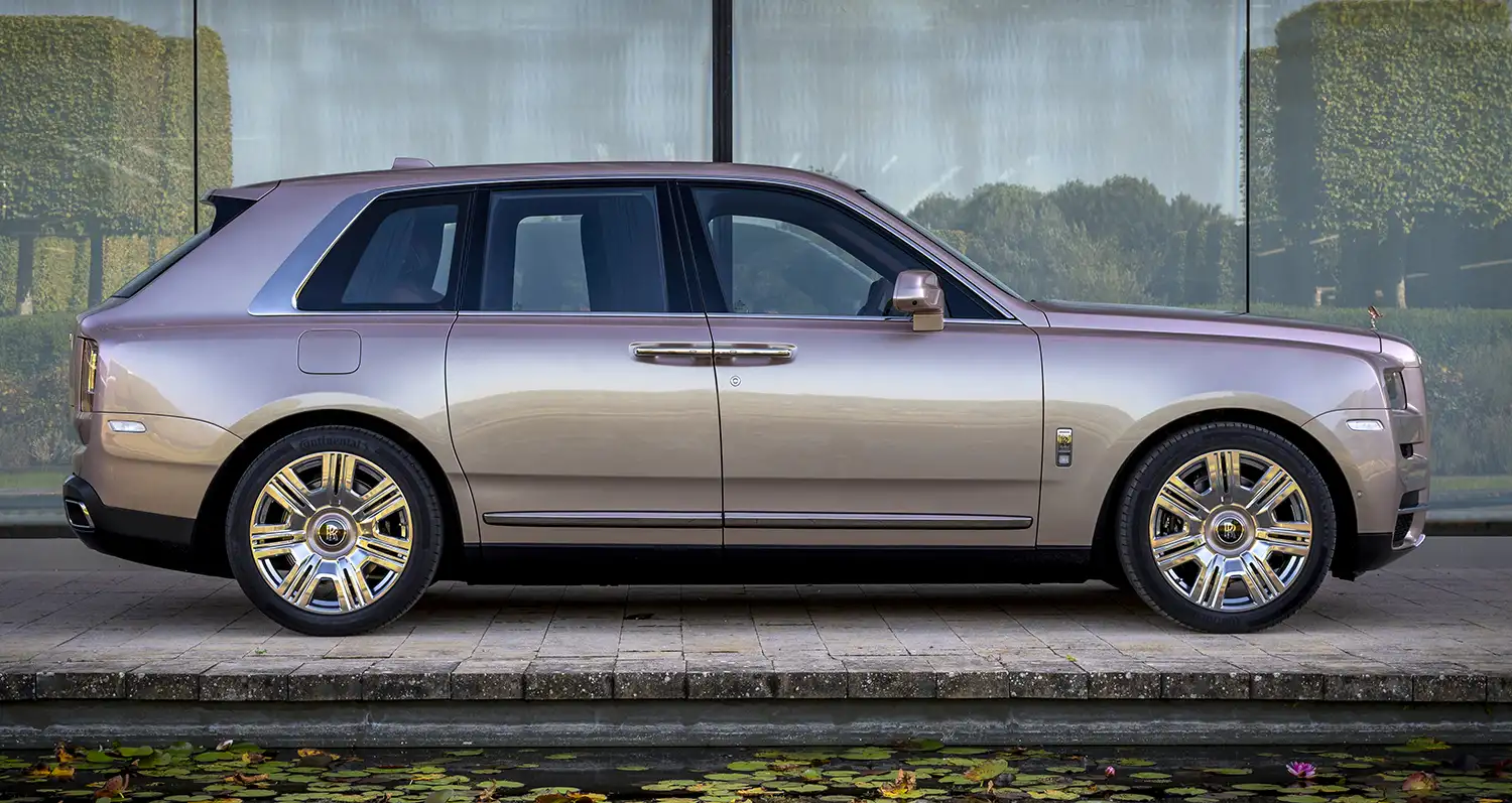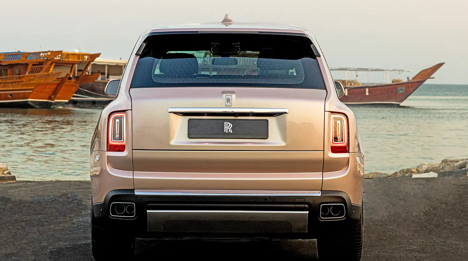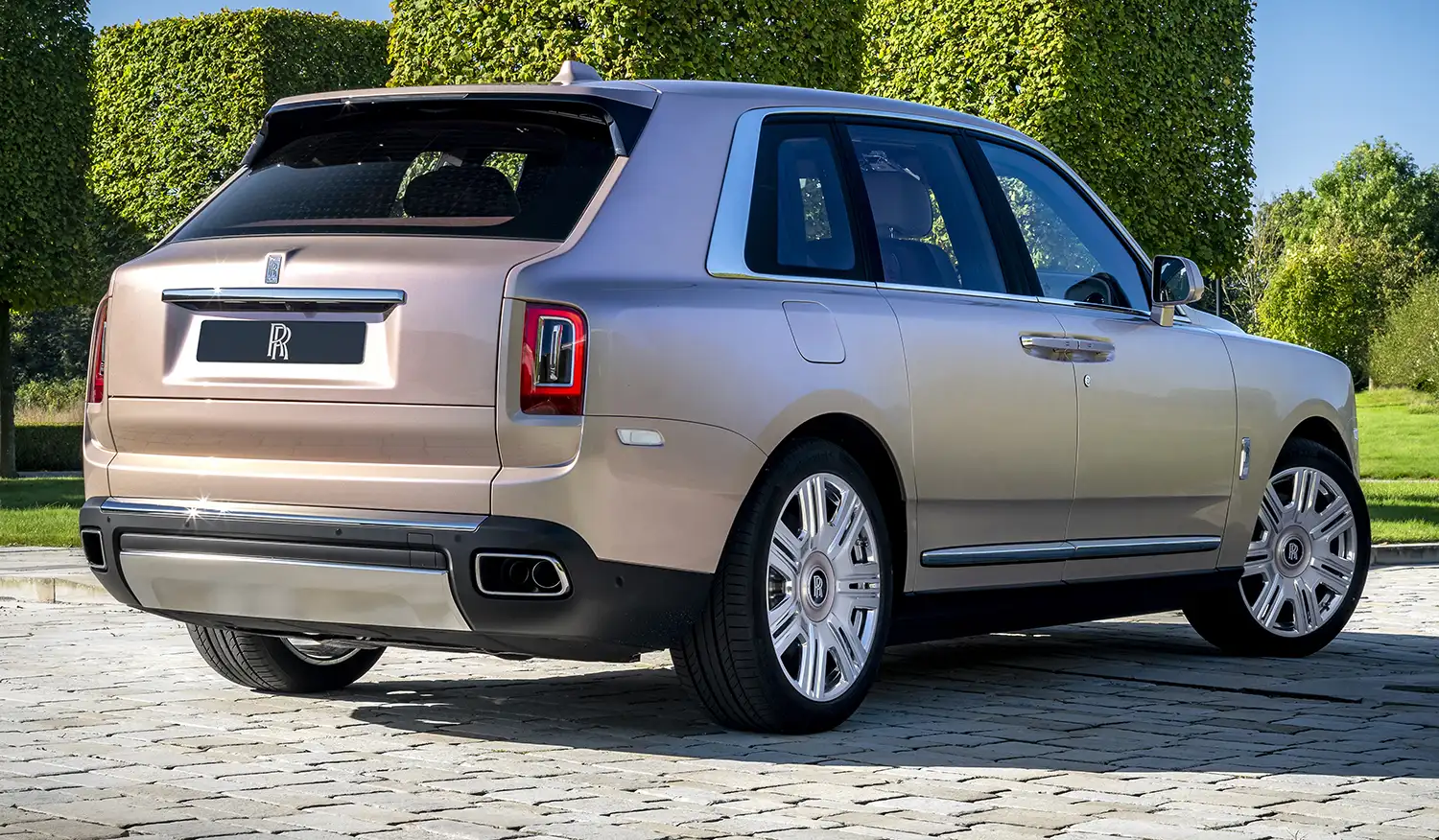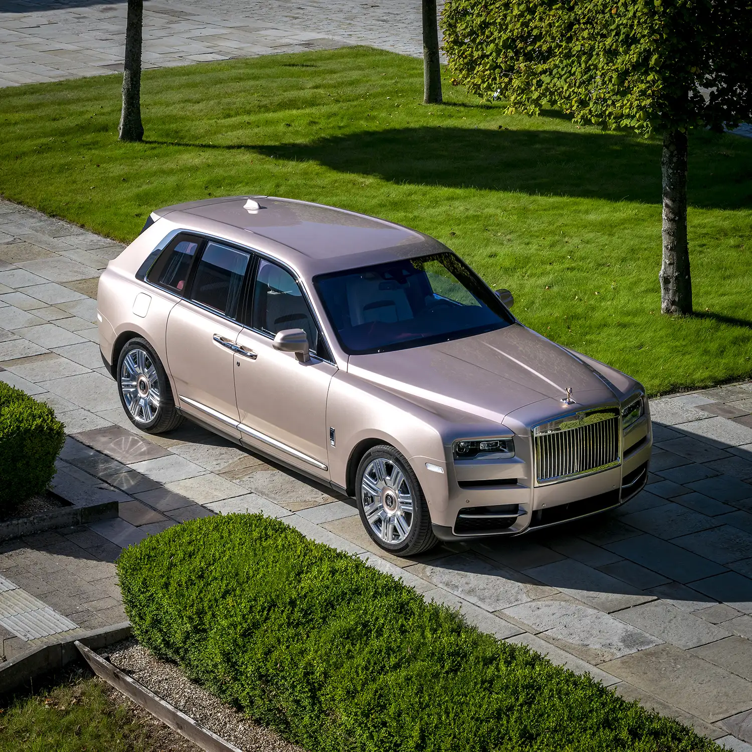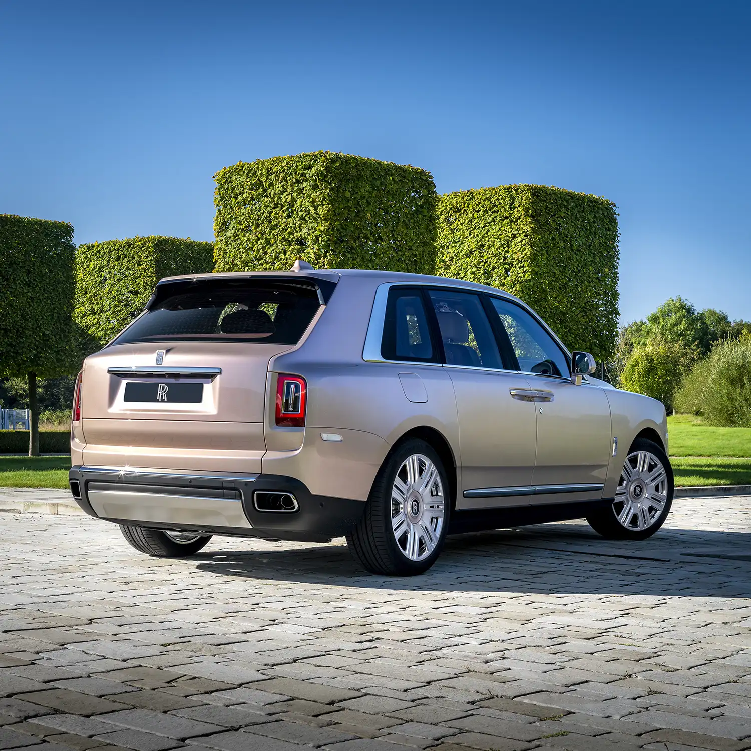 The Pearl Rose finish is complemented with a single coachline, applied by hand in Rose Gold paint, to match the rose gold-plated Spirit of Ecstasy mascot. The rose gold theme also extends to the Bespoke treadplates, which are revealed on each of the four door sills upon opening.