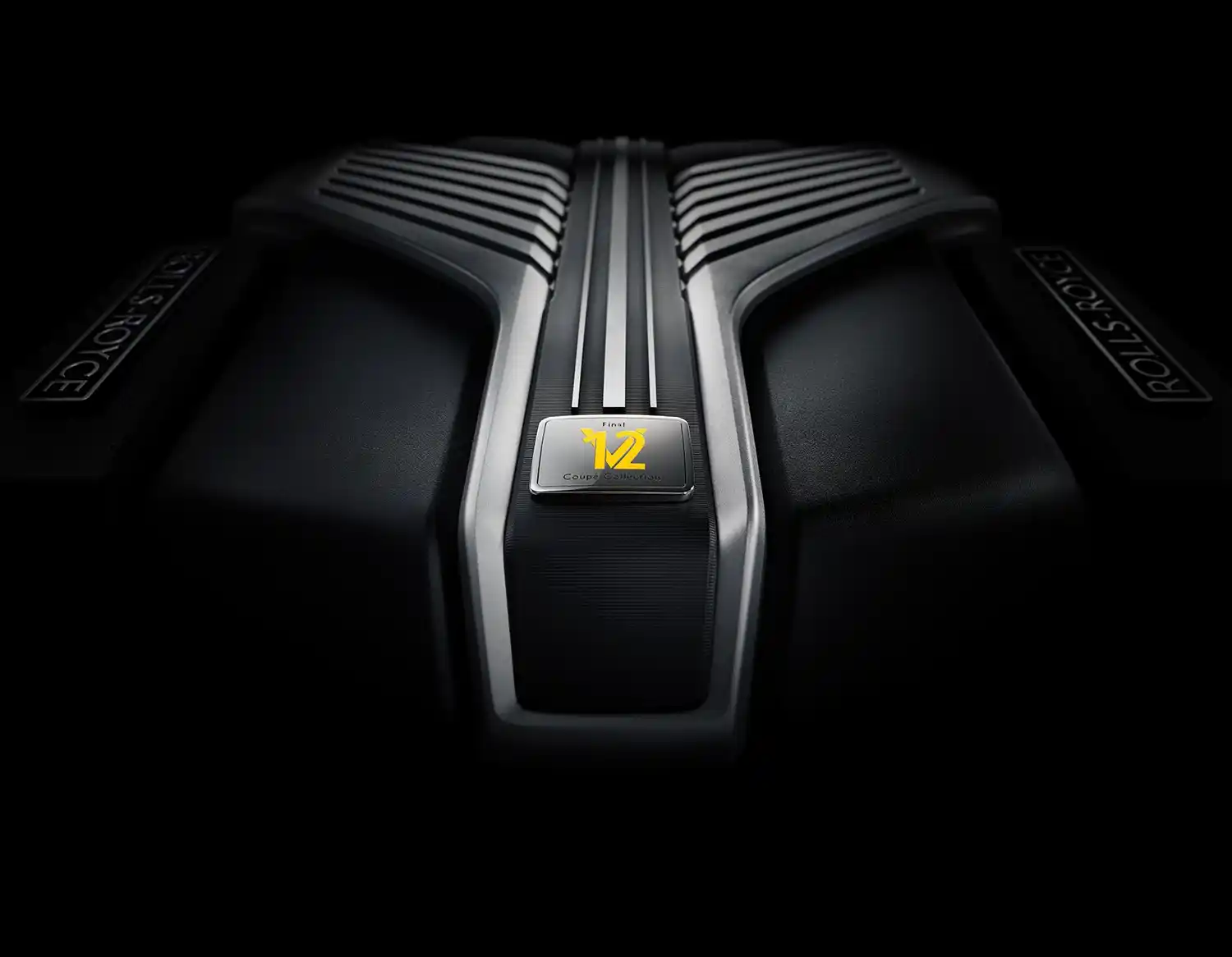An exclusive Bespoke plaque is mounted on the engine cover to signify this as the last V12 ever to be fitted to a Rolls-Royce coupé. Machined from a single piece of polished metal, the plaque is inscribed with the V12 monogram in Bright Yellow, and the legend ‘Final Coupé Collection’ in Black.