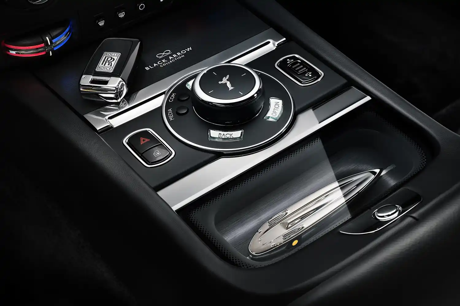 Black Badge Wraith Black Arrow’s exclusive Bespoke finish features a full colour graduation between two tones – Celebration Silver and Black Diamond. A glass-infused ‘Crystal’ paint over layer has been applied to the Black Diamond paint to enhance the transition between the two colours, achieving a striking motion blur effect from front to rear. This exclusive Bespoke technique also gives the coachwork a subtle texture inspired by the crusted surface of the Bonneville Salt Flats, set beneath a high gloss lacquer, which is polished for more than 12 hours to achieve a glass-like finish.