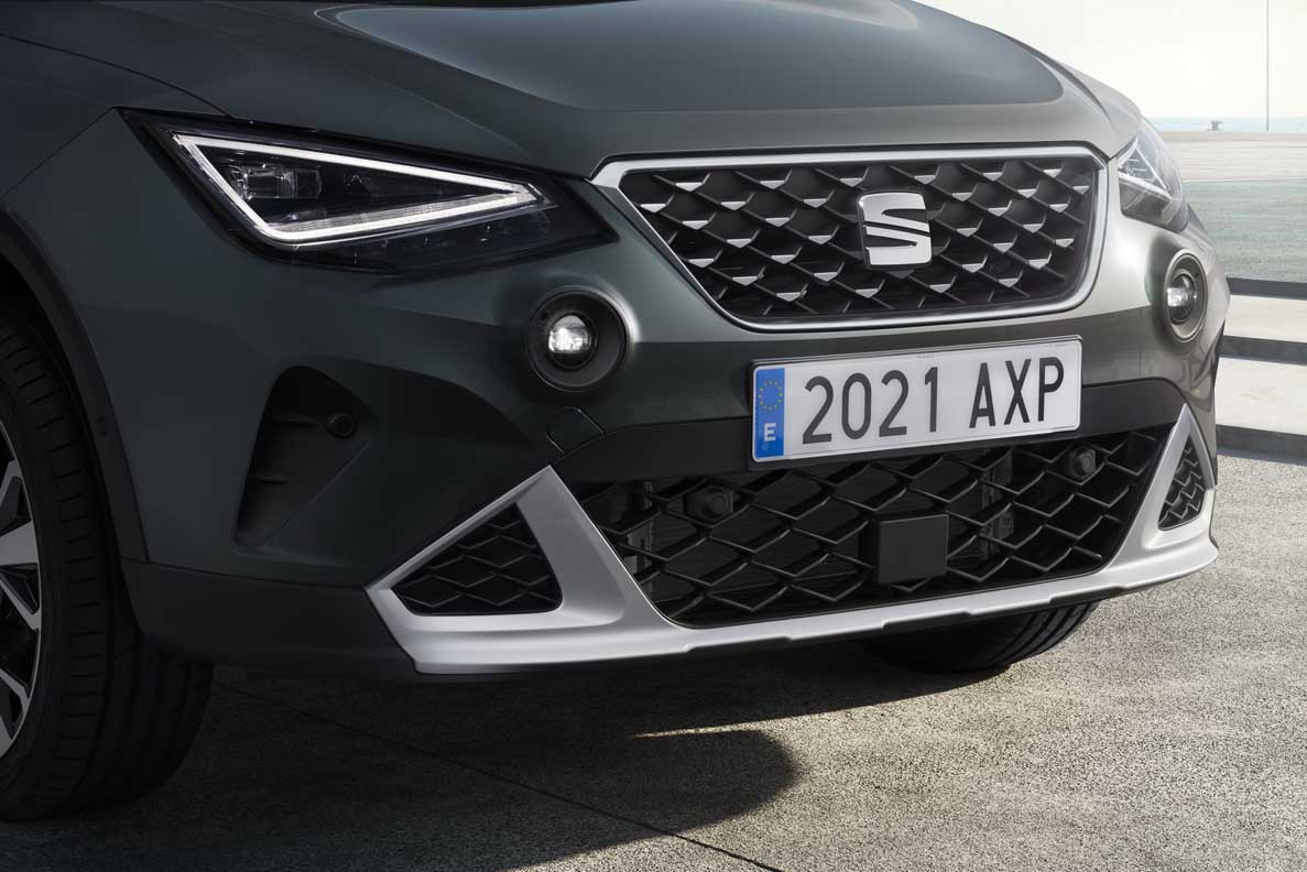 From the front, the Arona’s distinct, three-dimensional look is enhanced by the new hot-stamped grille designs – while the front bumper in Reflex Silver and newly designed and positioned foglamps enhance the rugged character.