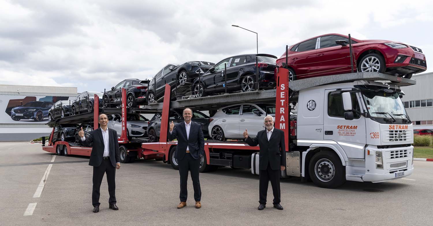 SEAT S.A. and SETRAM are at the forefront of sustainable road logistics and have launched the first megatruck for vehicle transport in Spain. Until now, SEAT S.A. has only been using this type of truck for transporting parts, but from now on it will also transport cars manufactured at SEAT Martorell to the Port of Barcelona, reducing the number of journeys and improving economic and environmental impacts.