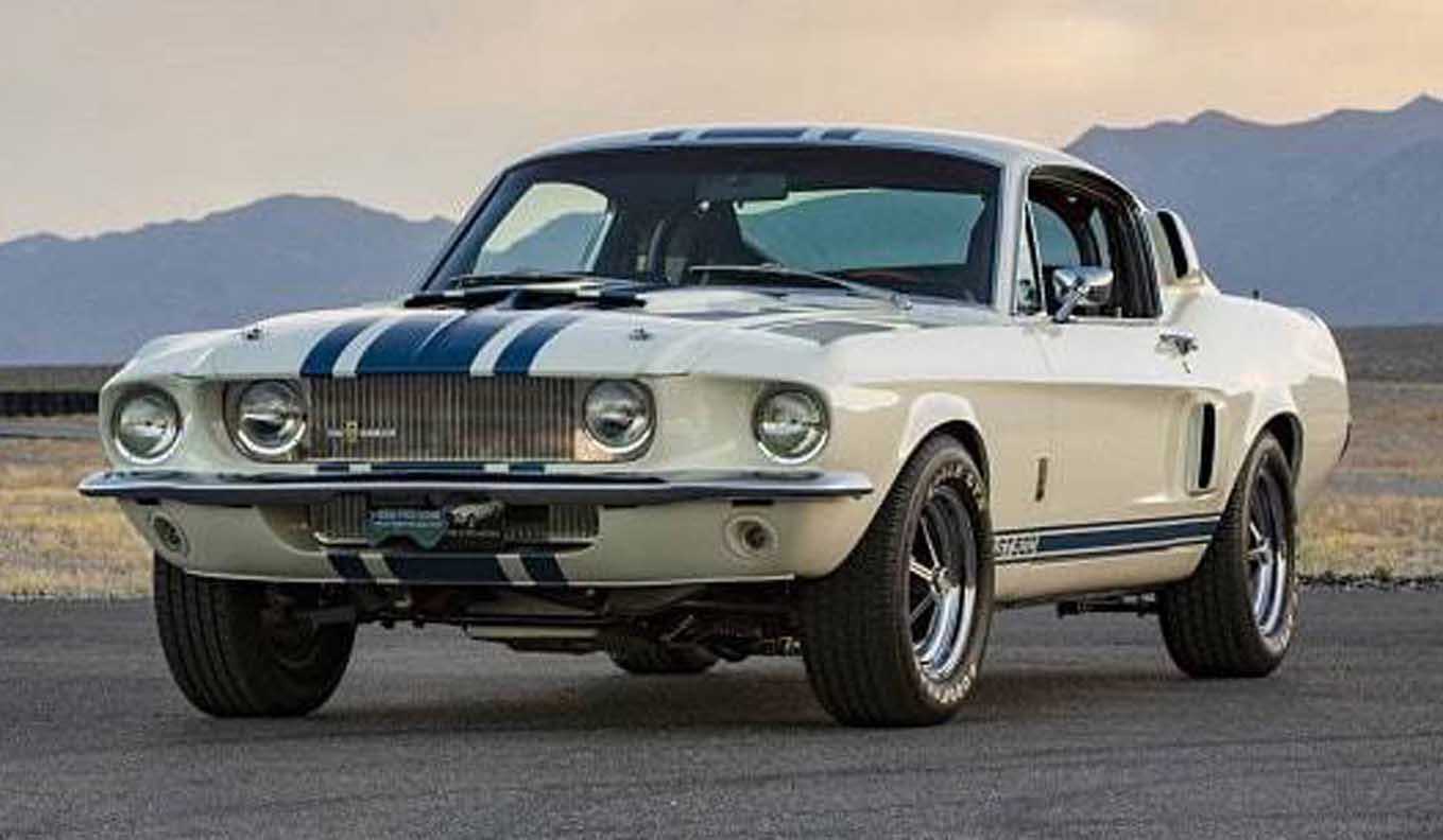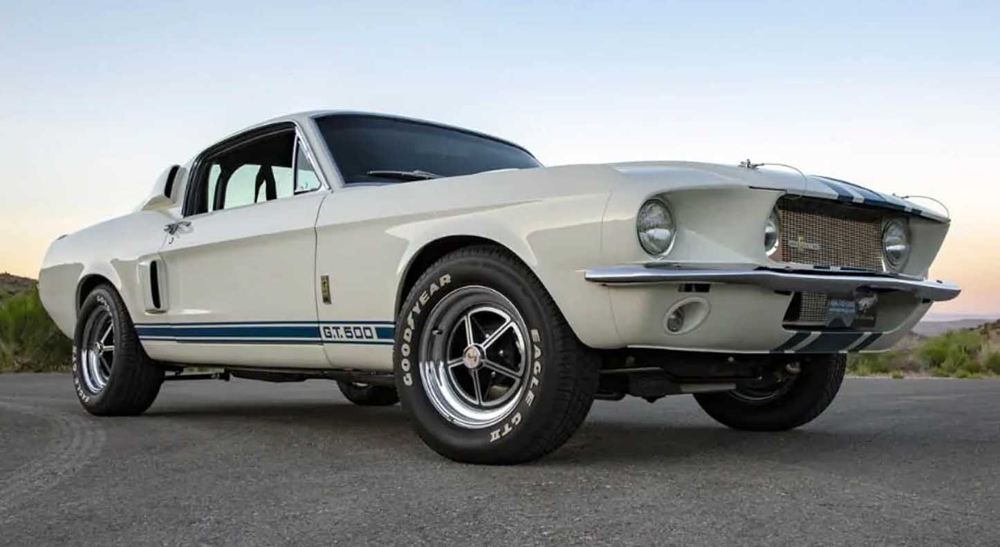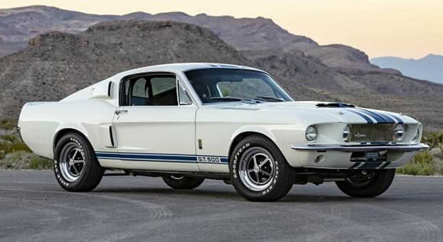 Shelby chief engineer Fred Goodell randomly chose a white fastback for transformation in 1967. He first replaced the engine with a lightweight medium riser 427 motor. The race motor was fitted with a host of modifications that was said to increase output to 520 horsepower. Shelby added heavy duty front disc brakes, Detroit Locker rear end, rear traction bars and special Goodyear Thunderbolt tires. The Super Snake sported unique triple stripes and a redesigned grille for improved air cooling.