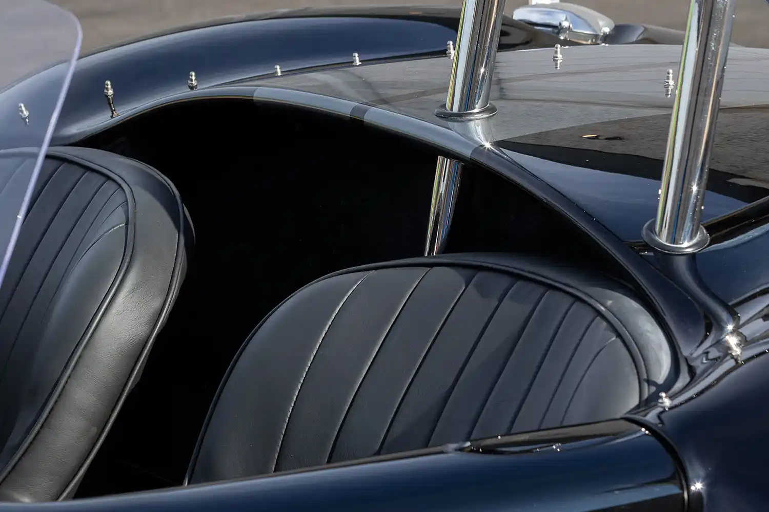 Championship driver Carroll Shelby retired from racing due to a heart ailment to build sports cars. He dreamed of mating a reliable, powerful American V8 engine to a light, nimble European chassis. He forged a relationship with Ford Motor Company that created performance magic. Shelby sourced the Ace sports car from AC and partnered with Ford Motor Company to use its new small block motor. Attracting talented individuals from California’s aerospace and hot-rod community, along with tapping resources of Ford, he founded Shelby American. His team of Southern California hot-rodders created one of the most iconic streetcars and successful racecar programs of all time, the Cobra.