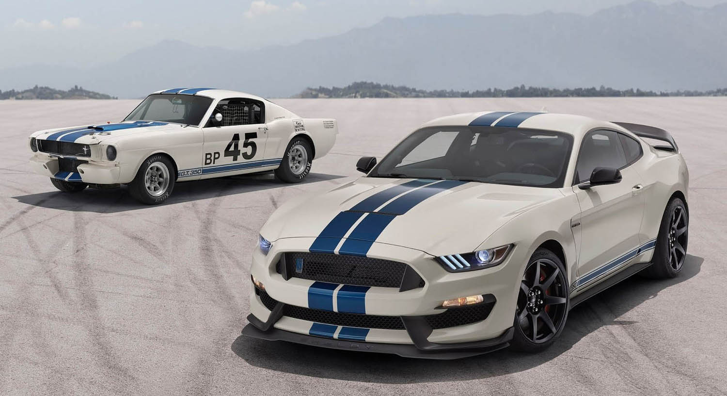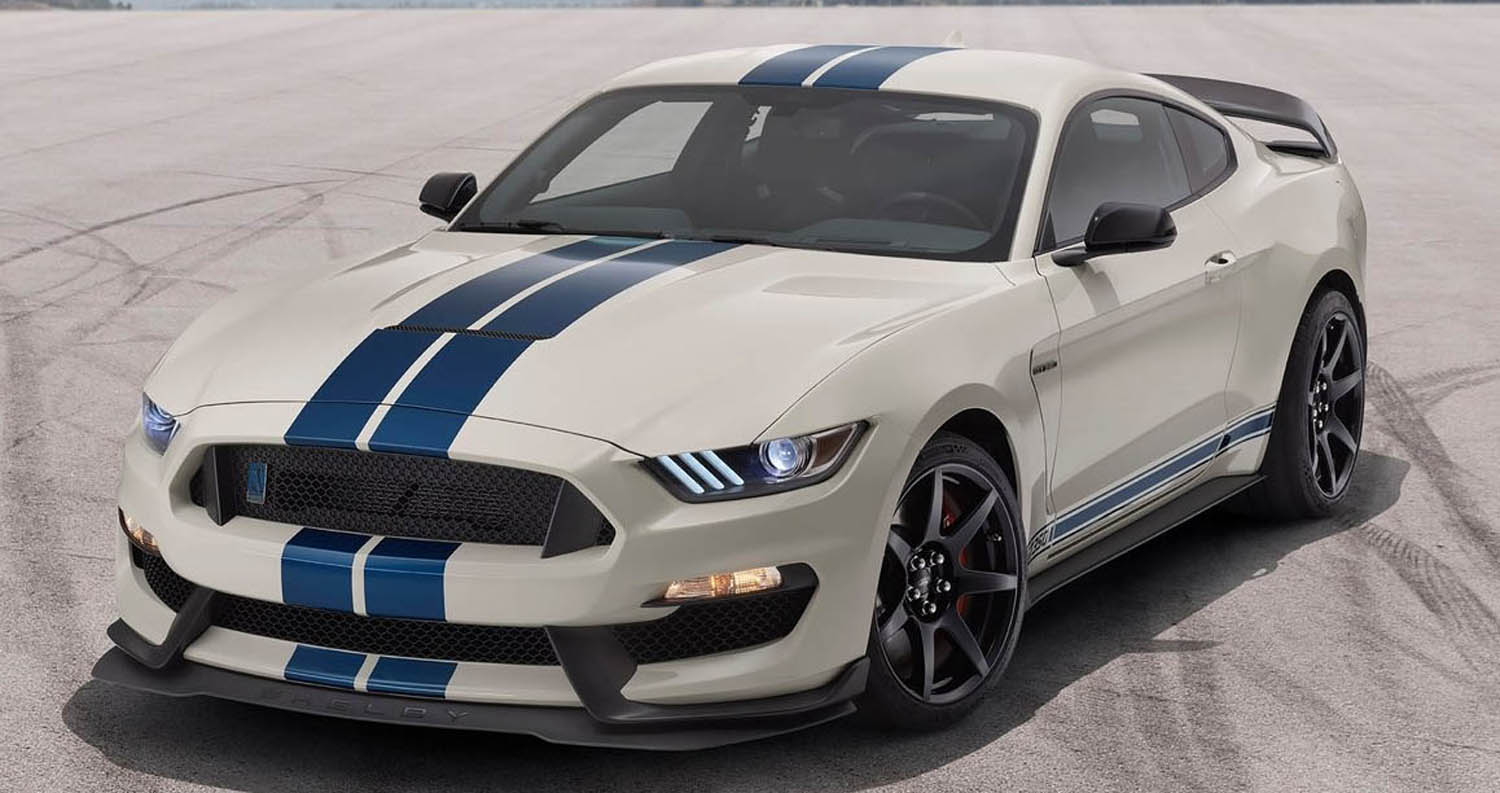 For 2020, Ford is producing a limited run of Heritage Edition fastbacks finished in classic Wimbledon White with Guardsman Blue side and over-the-top race stripes in a nod to the 1965 GT350 competition model developed by Carroll Shelby. The United States has sported blue and white as its assigned international racing colors since the 1950s. Additional Heritage Edition cues include front and rear exterior badges finished in Guardsman Blue and a unique dash badge inside. GT350R models will feature all-black seats with red accent stitching.