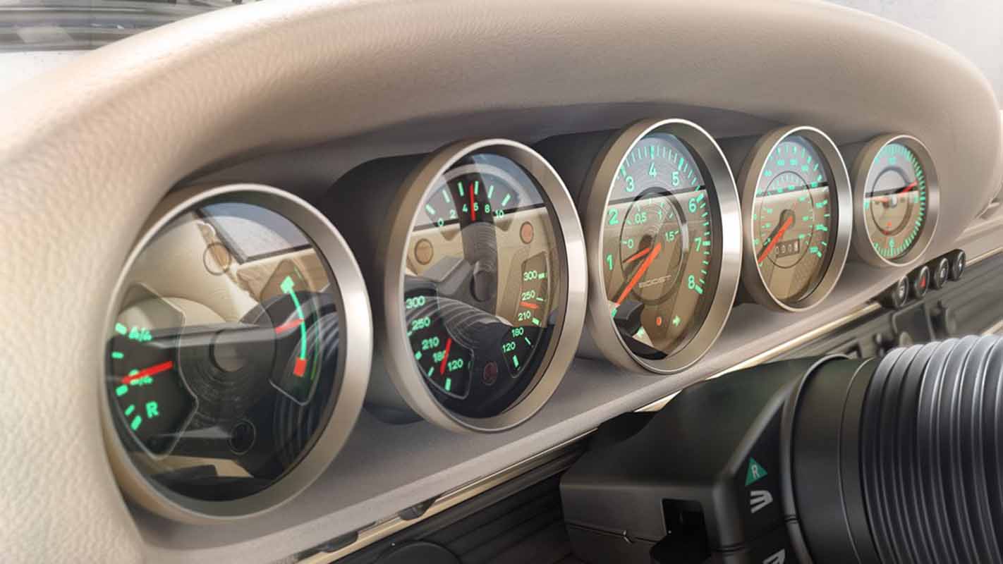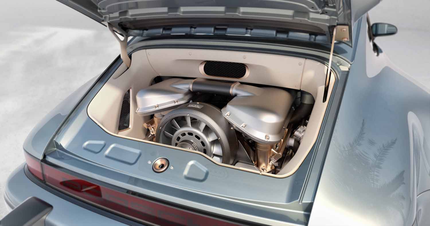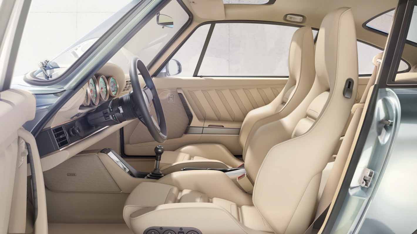 The collaboration between Singer and owner enables all points in between, from refined grand touring to sports focus, to be accommodated. Immensely powerful, turbo-specific, brakes, ABS, and traction control sit in reserve for the moment they are needed. Carbon-ceramic discs are available if desired by the owner.