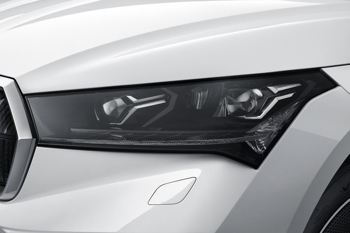 The ENYAQ iV is equipped with LED headlights and tail lights as standard, whilst full LED Matrix headlights and full LED tail lights in a ‘C’ shape are available as options. Each Matrix high-beam module contains 24 LEDs, which can be controlled individually and enable the driver to have the high beam on at all times without dazzling other road users. If a camera on the windscreen detects vehicles as well as people and objects reflecting the light, the intelligent lighting technology automatically turns off individual segments of the light beam.