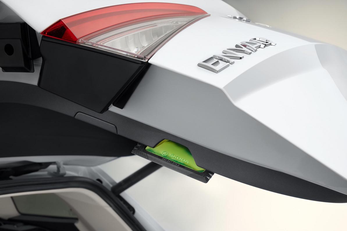 When it comes to all-electric vehicles, different questions arise than for cars with a combustion engine. Where do I store the charging cable? And how do I keep my hands clean when handling the cable? ŠKODA has found suitable Simply Clever answers to these questions too. The charging cable can be easily cleaned with a cable cleaner after use, and there is a protective cap for the charging socket. Afterwards, the cable can be stowed in a compartment under the boot floor. The car also comes with true Simply Clever classics such as the umbrella in the driver’s door and the ice scraper with a tyre tread depth gauge. In the ENYAQ iV, this is now found on the inside of the tailgate rather than the fuel filler flap.