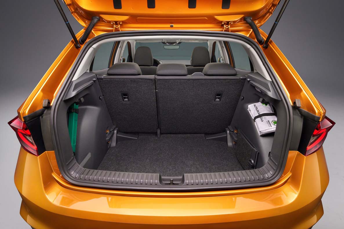 Compared to the first three model generations, the latest ŠKODA FABIA is larger both inside and out, while its weight remains virtually unchanged. At a length of 4,108 mm, it exceeds the four metre mark for the first time. Compared to its predecessor, the new FABIA is 111 mm longer; its wheelbase has increased by 94 mm to 2,564 mm, and at 1,780 mm, it is 48 mm wider. The increased overall dimensions make it possible to offer an even more spacious interior. ŠKODA has also significantly increased the FABIA’s boot, which was already the largest in the segment for the predecessor. The new FABIA now offers 380 l of storage space, which is another 50 l more than before. By folding down the rear seats, the capacity of the boot can be increased to 1.190 l.