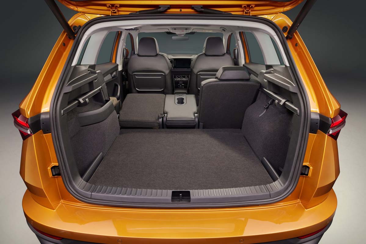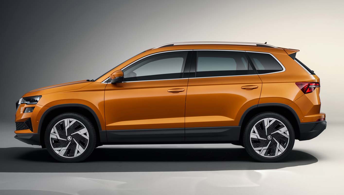 ŠKODA AUTO has continued to develop its design language for the revised KAROQ, making the SUV look even more striking. The wider, now hexagonal ŠKODA grille, slimmer headlights as well as tail lights, and aerodynamically optimised alloy wheels with black plastic Aero trim create fresh visual highlights. The new wheels, rear window finlets and a new rear spoiler all improve the car’s aerodynamics while lowering its CO2 emissions. The interior features new upholstery which, as an option, can be made from sustainable materials. New technology – such as full-LED Matrix headlights and an expanded range of assistance systems – also debuts in the range. Five efficient engines from Volkswagen Group’s EVO generation round off the KAROQ’s update. Two diesels and three petrol engines deliver power outputs ranging from 81 kW (110 PS) to 140 kW (190 PS). The 2.0 TSI producing 140 kW is reserved for the KAROQ SPORTLINE and exclusively with all-wheel drive. The 2.0 TDI with an output of 110 kW is available with front- or all-wheel drive.