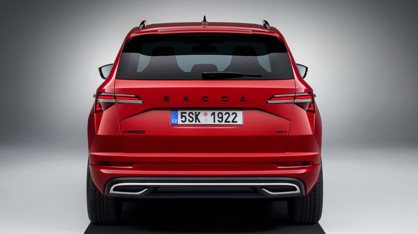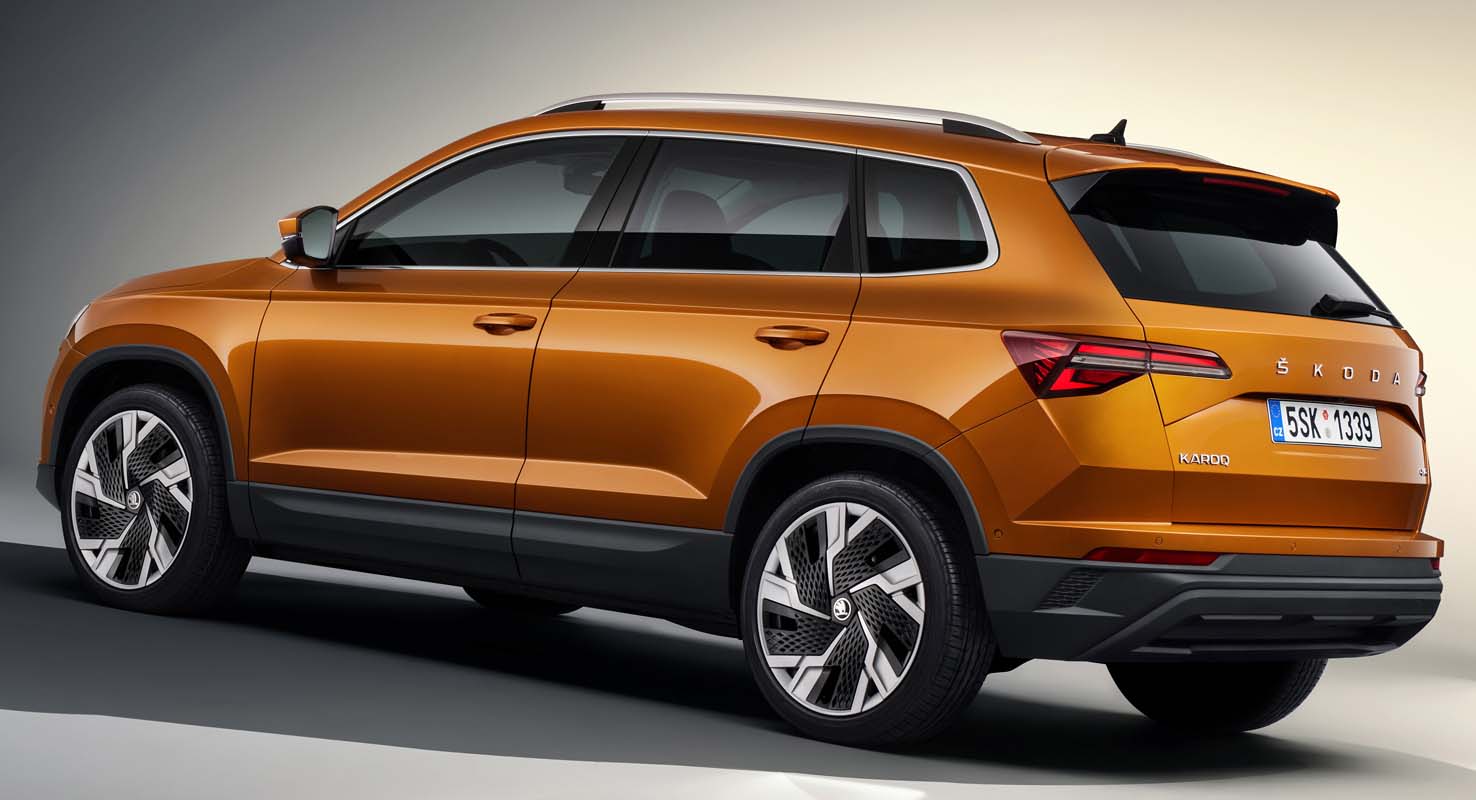 The restyled and sculptured bumper is body-coloured while the wide lower air inlet comes in a crystalline mesh-effect design. The L-shaped finishing touches on the sides accentuate the air curtains while a rugged, black-grained spoiler completes the front section. The air curtains direct the air through the sides of the front bumper as well as through the wheels, reducing air vortices and improving airflow. To reduce underbody drag, the all-wheel-drive KAROQ now comes with aerodynamically optimised fuel tank undertrays, which also cover the rear axle.