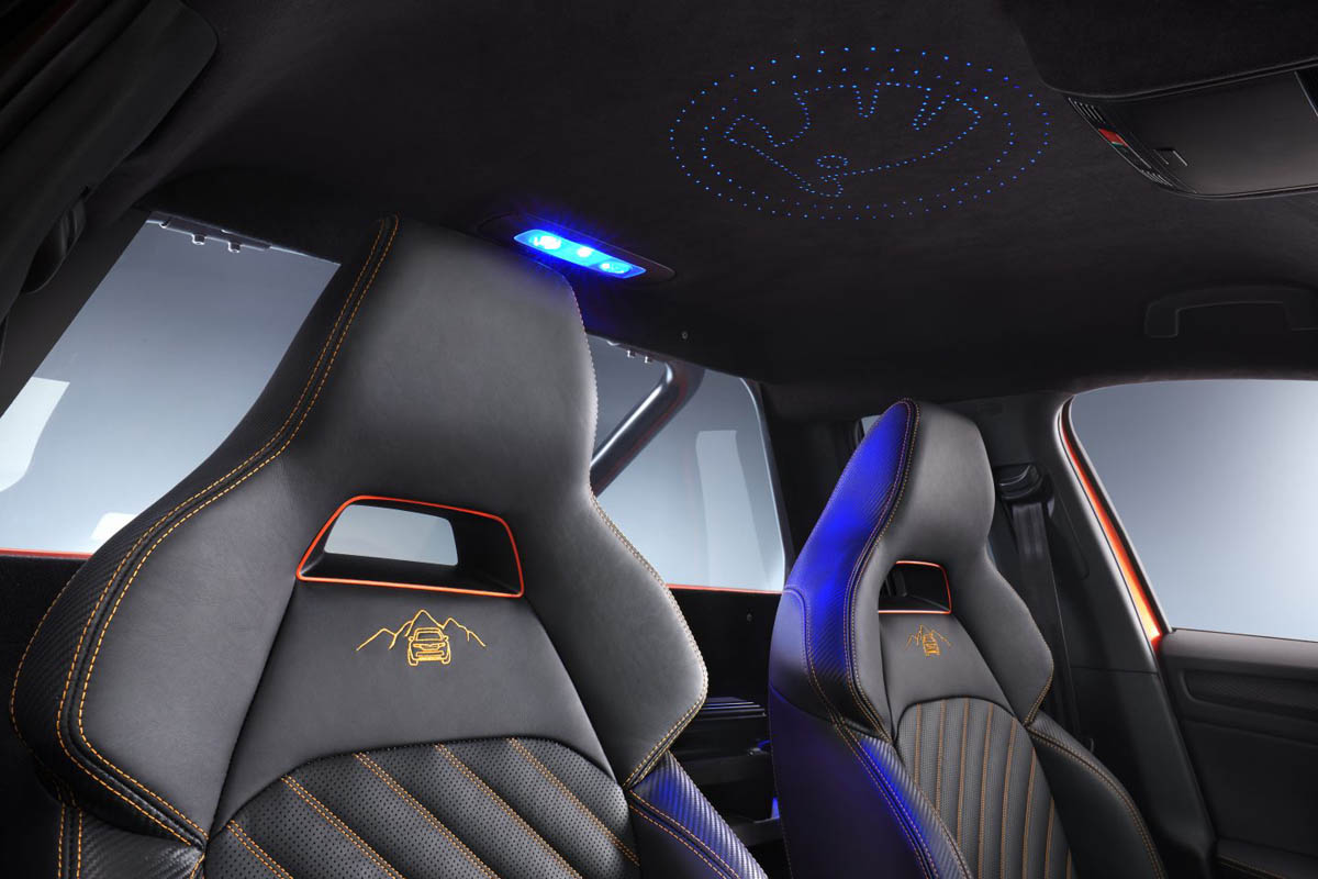 As in previous years’ Student Concept Cars, the apprentices demonstrated their inventiveness by including ingenious small details such as a glowing ŠKODA logo in the roof lining, designed by themselves, along with an integrated refrigerator, 3D-printed wheel hub ornaments and two walkie-talkies that are part of the vehicle. A very special feature created by this year’s class is the logo the students designed for the ŠKODA MOUNTIAQ: a car in front of a mountain silhouette. Embroidered in orange on the front seats’ backrests, it picks up the hue of the exterior paint finish as well as the colours of the orange highlights on the steering wheel and shift lever.