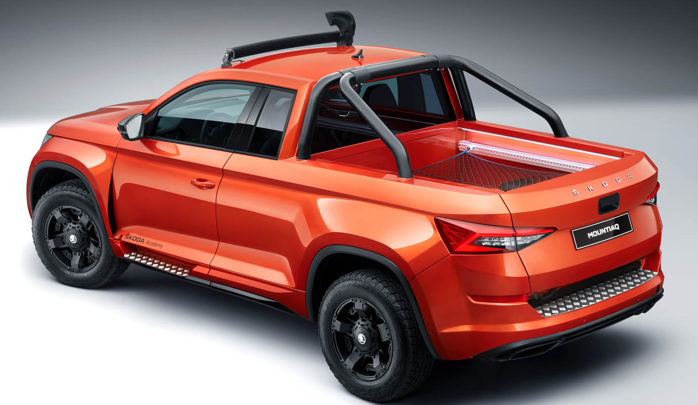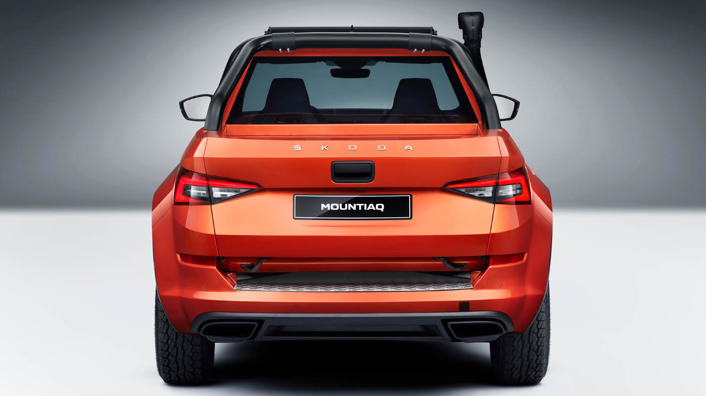 The name ŠKODA MOUNTIAQ conveys a spirit of adventure and off-road flair, combining the appeal of a contemporary lifestyle vehicle with the extraordinary everyday usability of a pickup. The rear of the spectacular concept car bears the ŠKODA wordmark in individual letters – a design element introduced in Europe with the new ŠKODA models SCALA and KAMIQ.