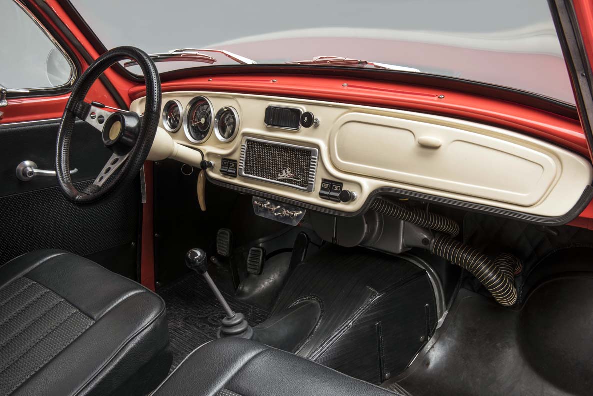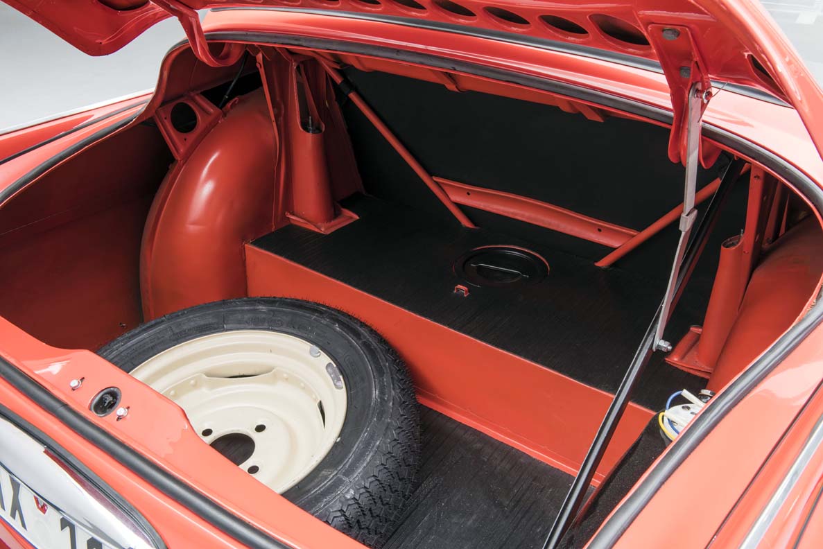 The factory team’s cars at this Monte Carlo Rally were only slightly modified – the compression ratio was identical to the production version, and an aluminium oil sump was fitted. Altogether, two gear ratios were homologated, and the final ratio was set at 4.78. At the rallies, cut tyres of the Barum OS 11 5.60×15 type and studded Michelin Valiarts ensured adequate grip on any surface.