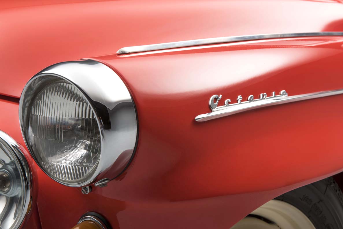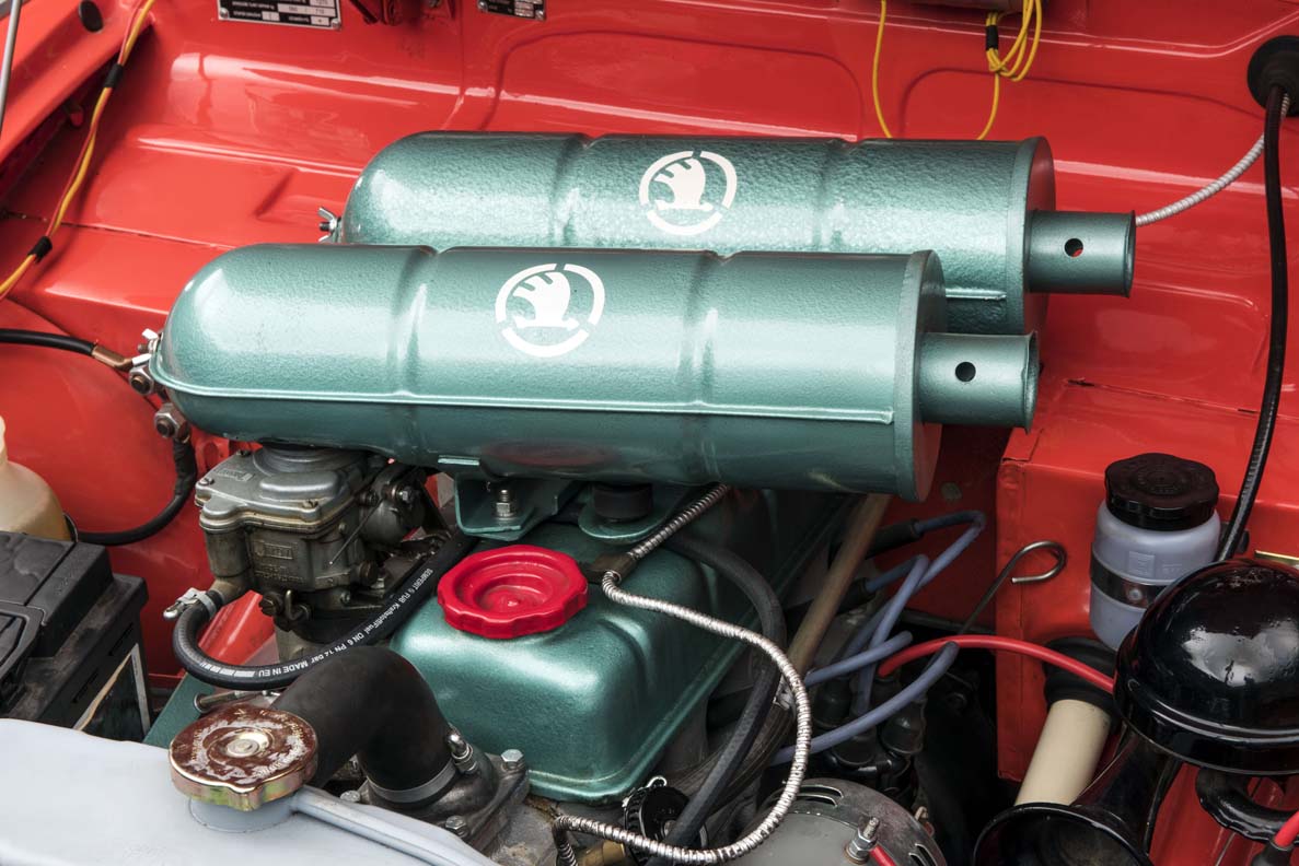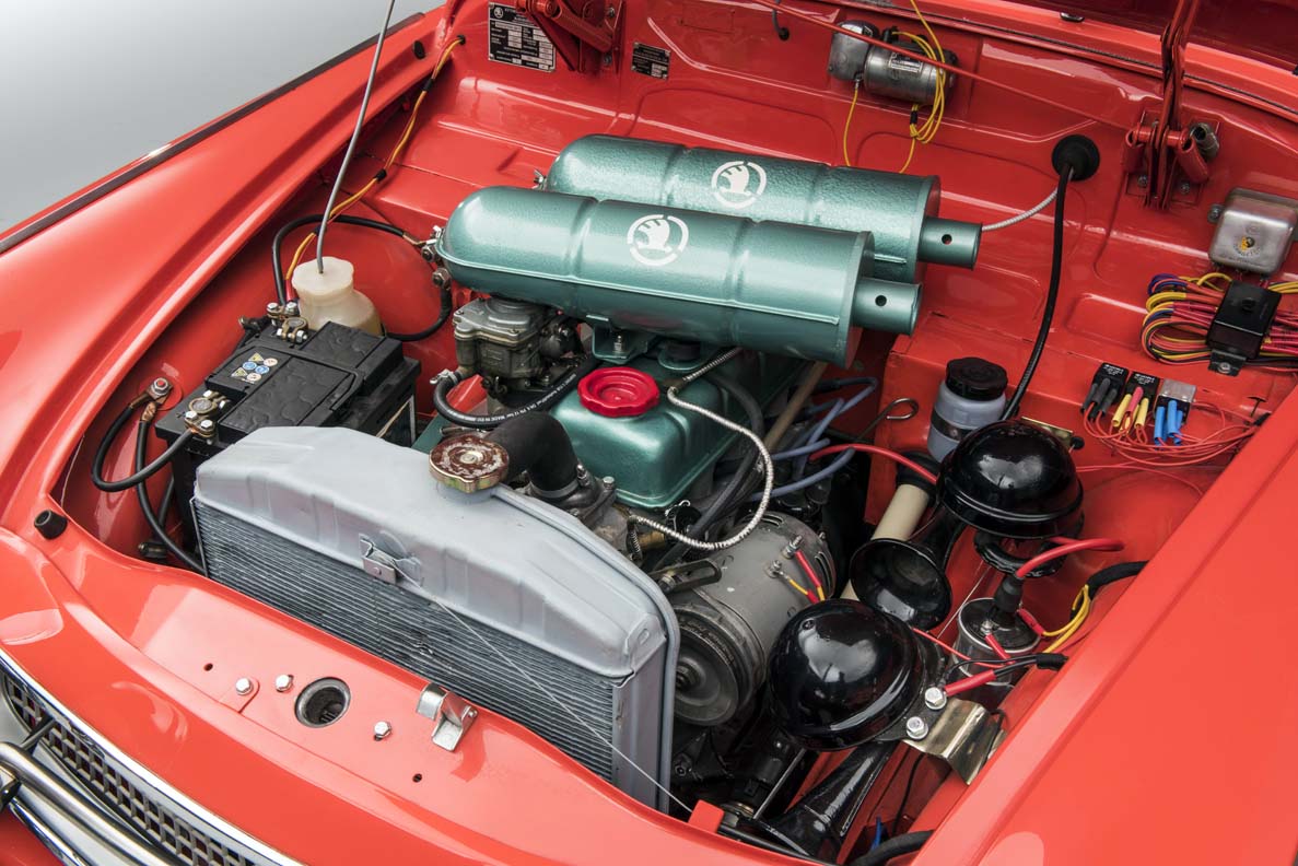 The OCTAVIA TS was available with two displacements and therefore also in two performance variants. In contrast to the basic version of the OCTAVIA, the initial version with a displacement of 1,089 cm3 had two Jikov 32 SOPb downdraught carburettors. Later, the engine was fitted with a new intake manifold and, thanks to the deflectors on the pistons, had a compression ratio of 8.4:1. These modifications increased the output to 50 hp at 5,500 rpm, while the maximum torque of 74.5 Nm was reached at 3,500 rpm.