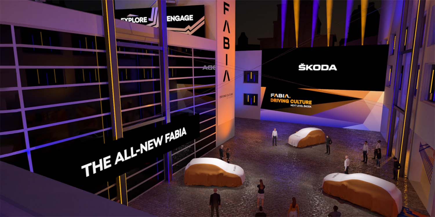 A three-dimensional model of the DOX was created for the virtual pavilion to stage the world premiere of the new ŠKODA FABIA. This is to give visitors the impression of being at a live event. The Centre for Contemporary Art is located in the Prague district of Holešovice and is a former factory that has been architecturally transformed into an impressive and ultra-modern space.