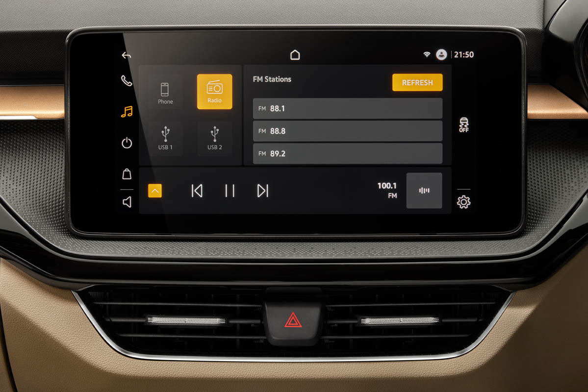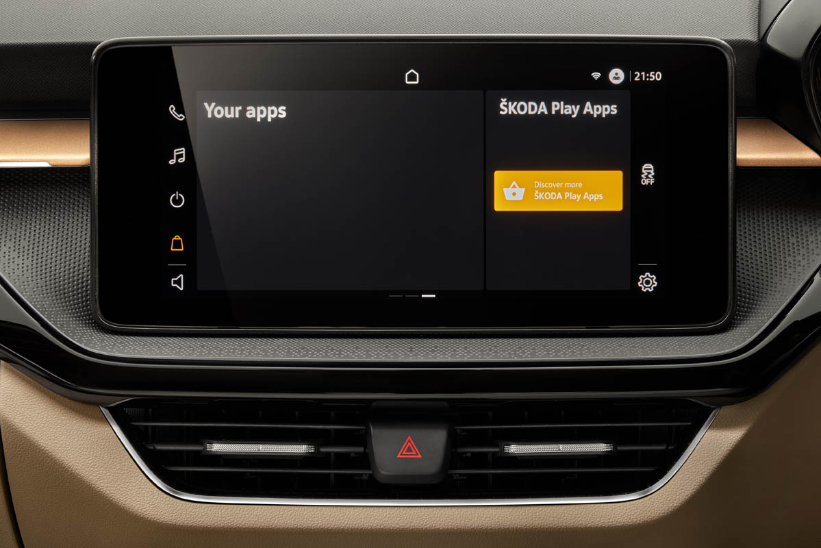 Both infotainment systems available for the new ŠKODA SLAVIA can be operated easily and intuitively, and entirely via the colour touchscreen measuring 7 or 10 inches. They feature SmartLink technology enabling the integration of smartphones. The Ambition and Style trim levels provide access to a plethora of MyŠKODA Connect mobile online services with ŠKODA Play Apps, which can be used to download a navigation function for the top-end infotainment system.