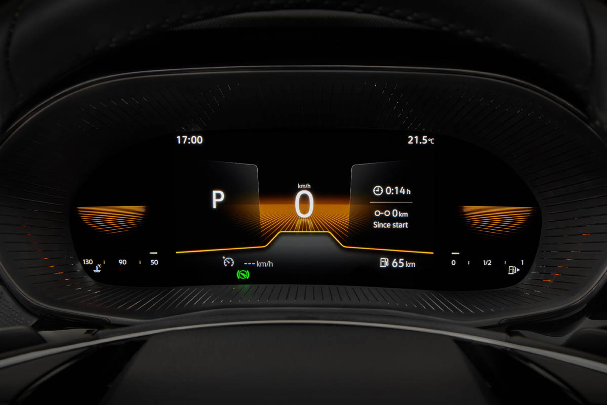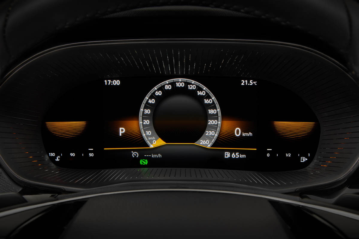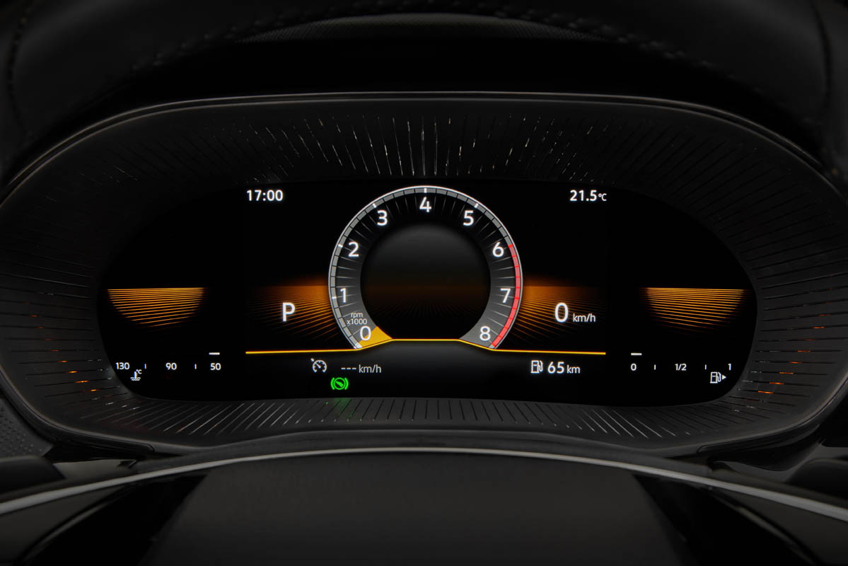 The range-topping trim level, Style, offers a digital instrument cluster with an 8-inch colour display; the other variants come with analogue gauges. The two-spoke multifunction steering wheel, as seen in other ŠKODA models, is upholstered in leather from the Ambition specification upwards. Vehicles fitted with automatic transmission or DSG also boast shift paddles on the steering wheel. LED reading lights in the front and rear come as standard. From the Ambition trim upwards, the extended ambient lighting illuminates the dashboard, the storage compartment in the centre console and the door handles. The SLAVIA also features a special design detail on the instrument-cluster housing, showcasing the ŠKODA lettering strikingly embossed on both sides.