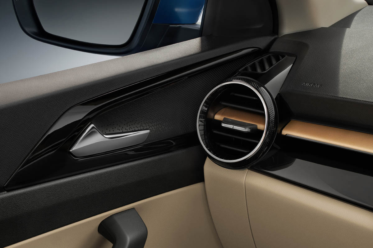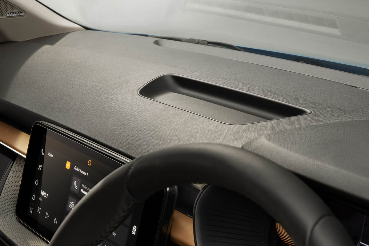 As with the KUSHAQ SUV, the ŠKODA interior designers paid particular attention to the preferences and needs of Indian customers for the new SLAVIA. Even the entry-level variant, Active, features powerful air conditioning, and from the Ambition trim level upwards, the SLAVIA boasts a touch-control Climatronic with Air Care function and air vents in the rear. The standard equipment for Style, the top-end specification, also includes ventilated leather front seats, an electric, sliding glass roof, KESSY keyless vehicle entry and an auto-dimming rear-view mirror. The utility recess on the dashboard is a market-specific feature. This is where the driver can keep a lucky charm in clear view.
