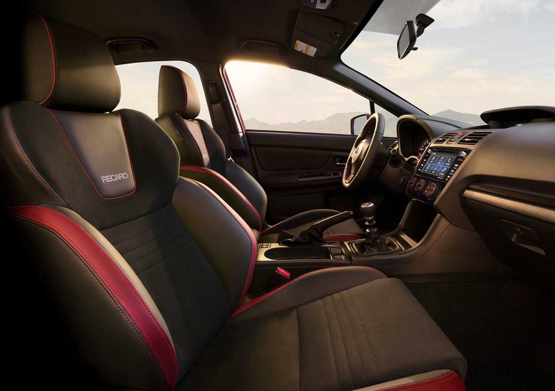 New brake pads provide significantly greater surface area for improved braking feel and fade resistance. The STI also offers the Recaro seats (standard on STI Limited, optional for base trim).