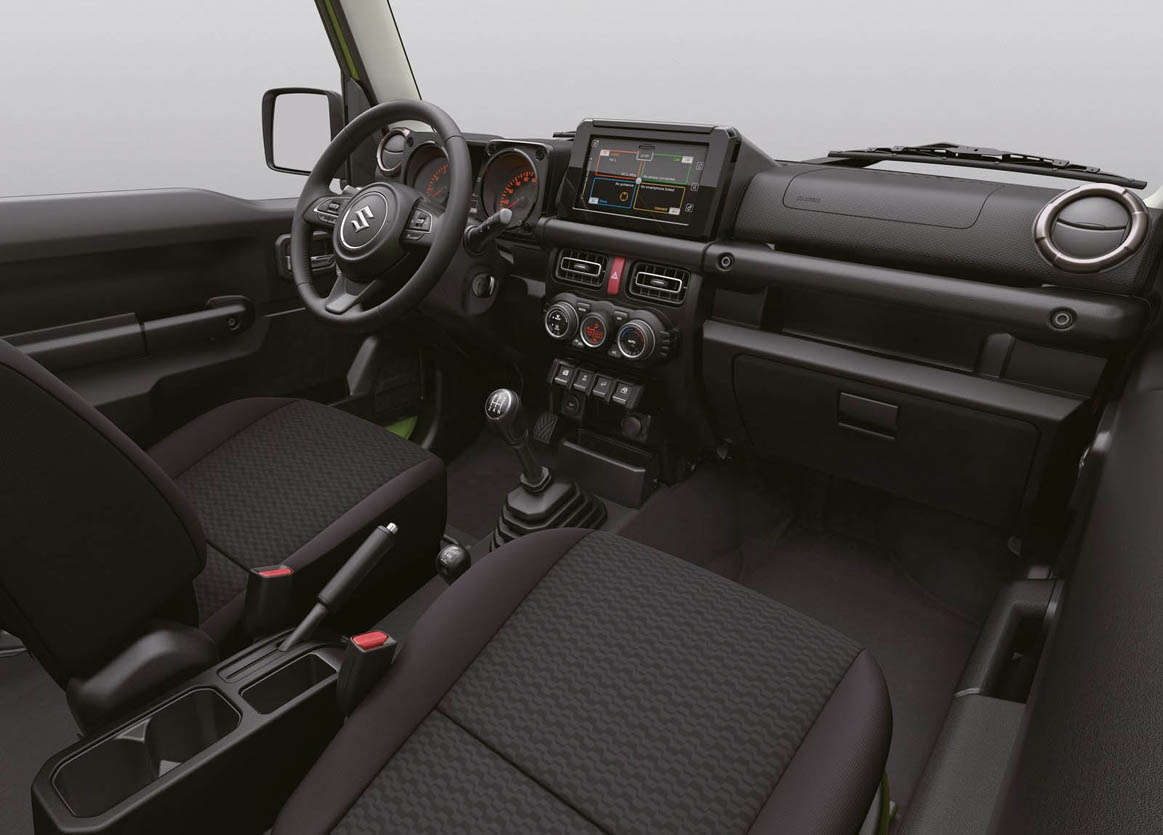 Eight body colours, including two new colours developed exclusively for the all-new Jimny: a high-visibility “Kinetic Yellow” designed to stand out in bad weather or rough worksites, and a low-visibility “Jungle Green” which blends in with natural scenery.