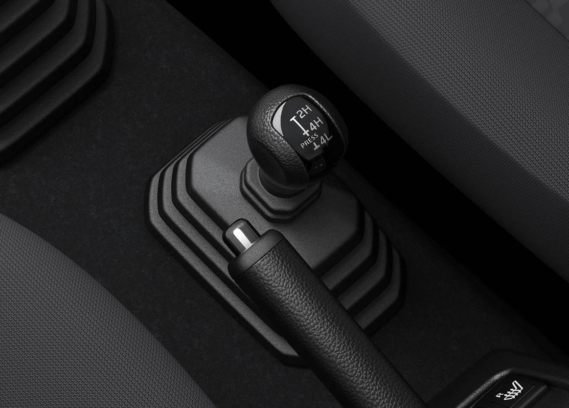 The Suzuki Jimny features a part-time 4WD system with low range transfer gear, which can be easily switched from 2H (2WD-high gear), 4H (4WD-high gear) and 4L (4WD-low gear) modes by a shift lever directly connected to the transfer gear. Compared to the 4H mode, the 4L mode can transfer more torque to the tyres while in lower gears, for better traction on steep slopes and rough terrain.