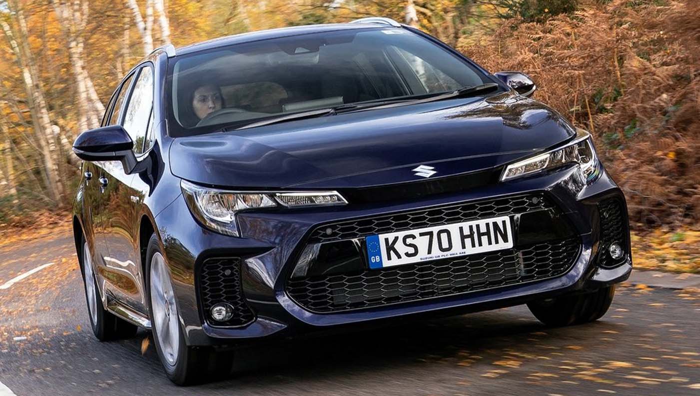 Designed with a low centre of gravity, the Suzuki Swace stands out with its wide stance and powerful rearward-flowing body lines, matched to a sporty front face with sharp bi-beam LED headlamps and large honeycomb-patterned grille.