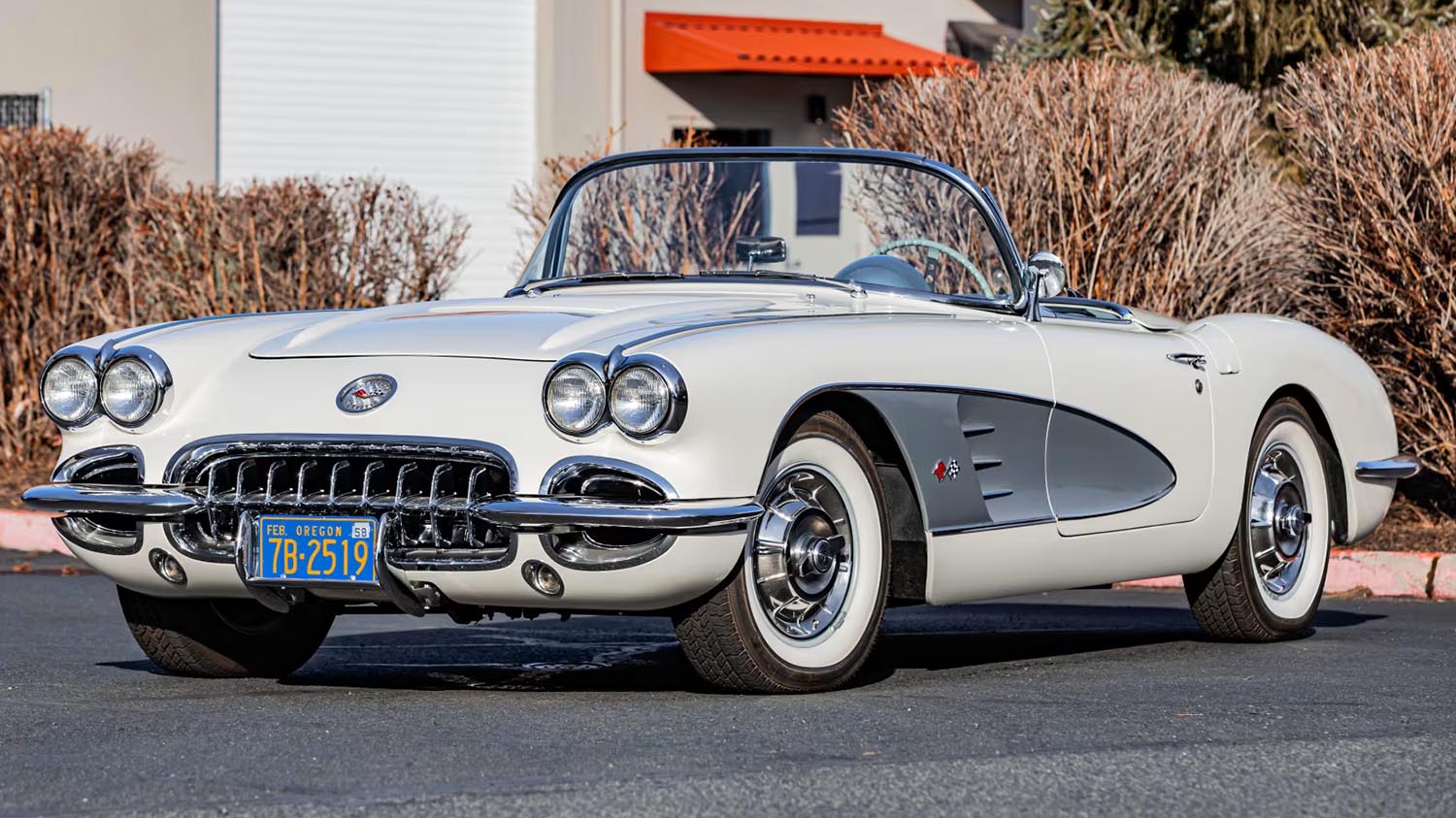 This NCRS Top Flight 1958 Chevrolet Corvette Convertible features a matching numbers 283/245 HP V-8 and a 4-speed manual. One of only 499 finished in Snowcrest White and Inca Silver.