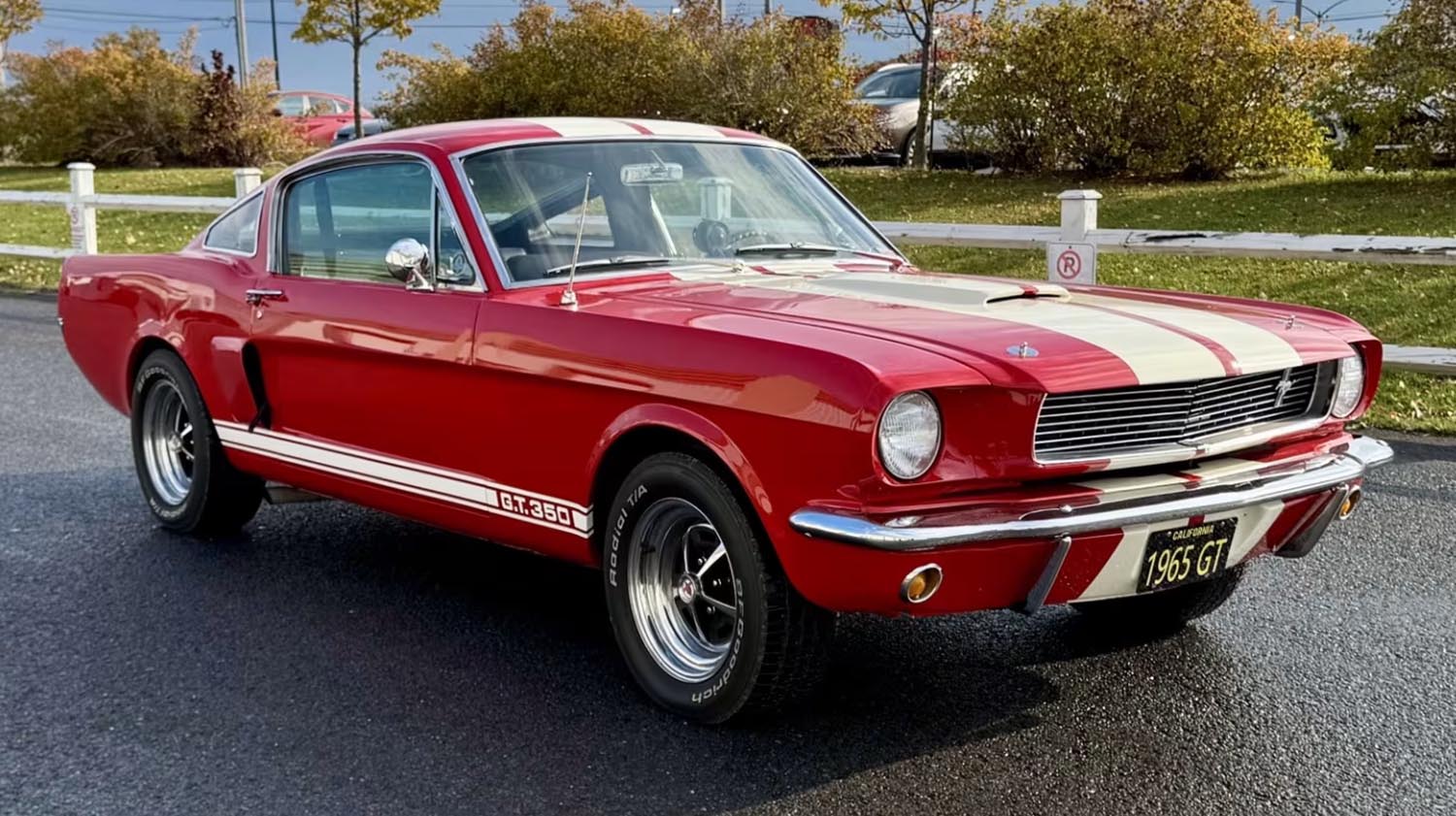 This Red 1965 Ford Mustang Fastback channels Shelby style with GT350 stripes and a 4-speed manual gearbox. Powered by a 289 CI V-8 and featuring Magnum 500 wheels, it brings a performance-oriented edge to the Houston 2026 auction block this April.