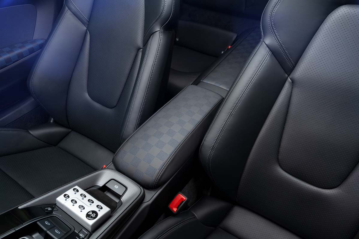 A true specialty of the TECHART interior manufactory is the handcrafted TECHART Sports Steering Wheel. The sports steering wheel has a straight ahead marker in contrasting color, while the hand rests, armrests, center console and selected parts of the back seat in leather are perforated in the checkered flag design.
