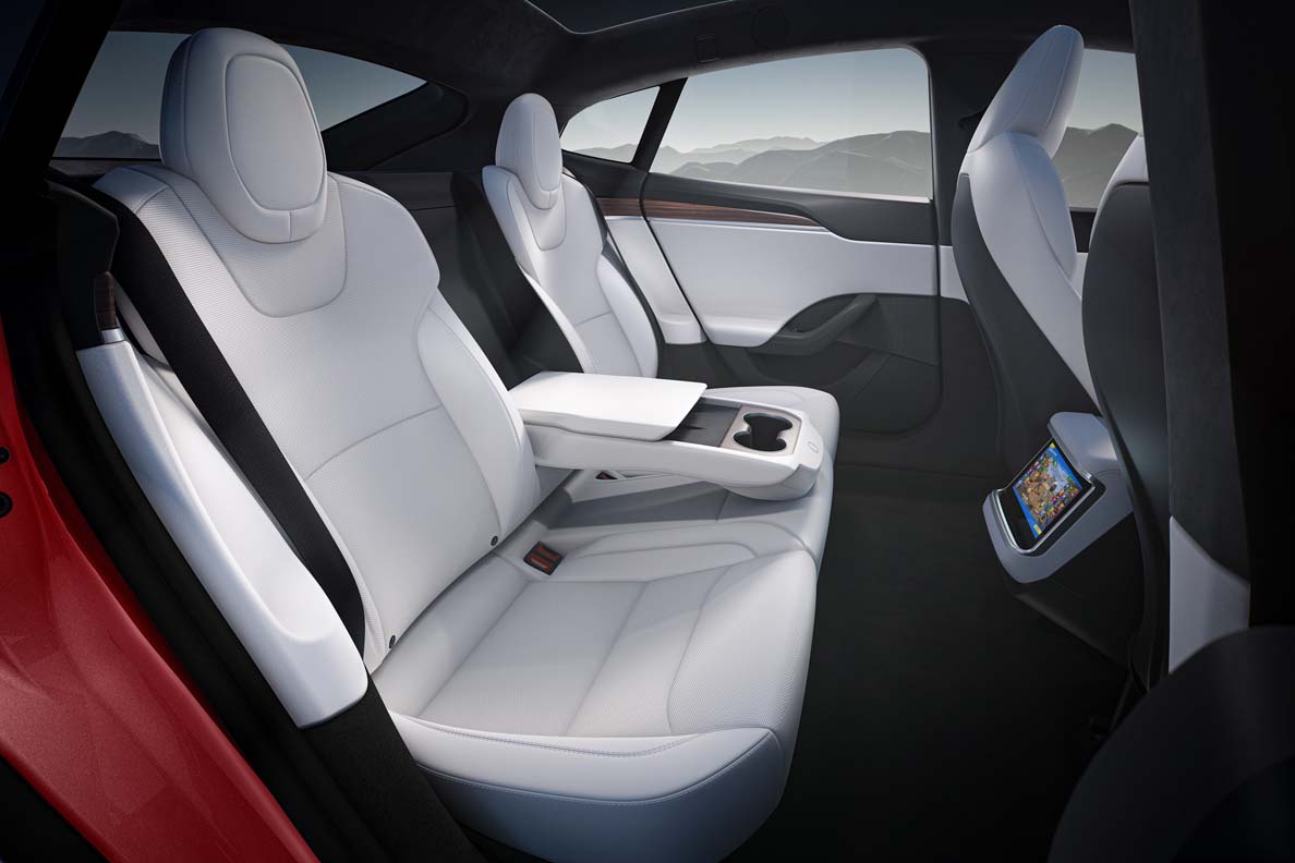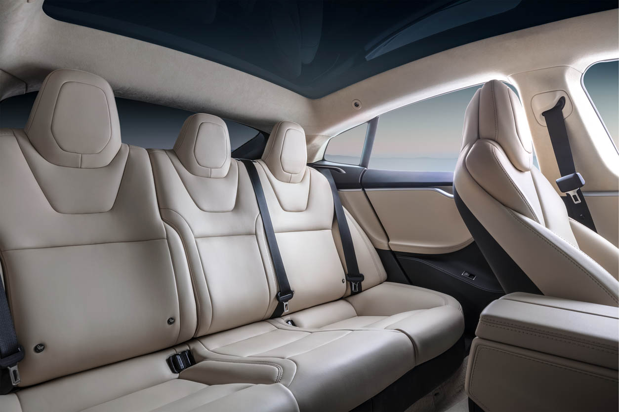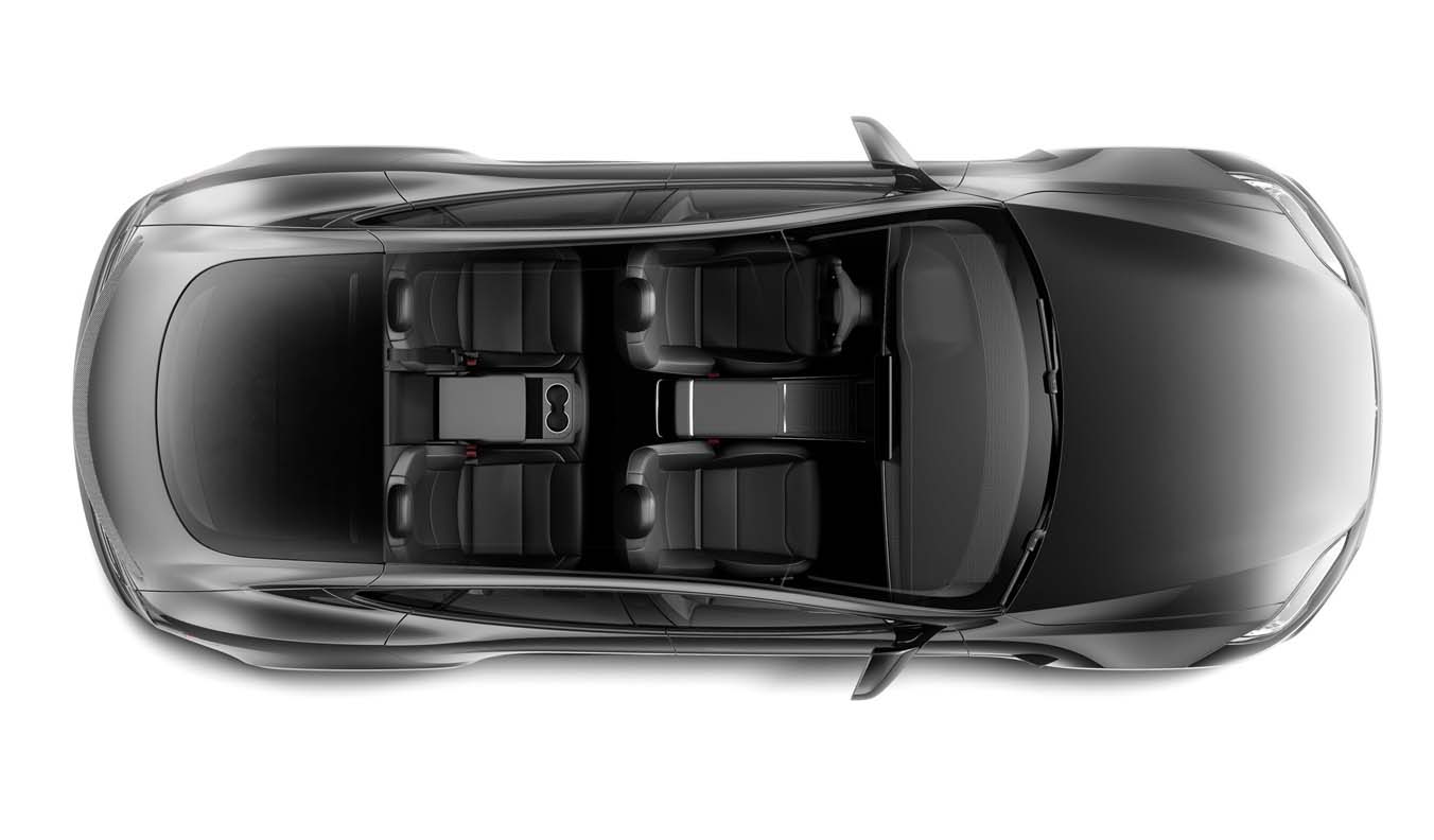Without an internal combustion engine, Tesla Model S allows for additional cargo space and offers a spacious cabin fitting five adults and two children (rear-facing jump seats).