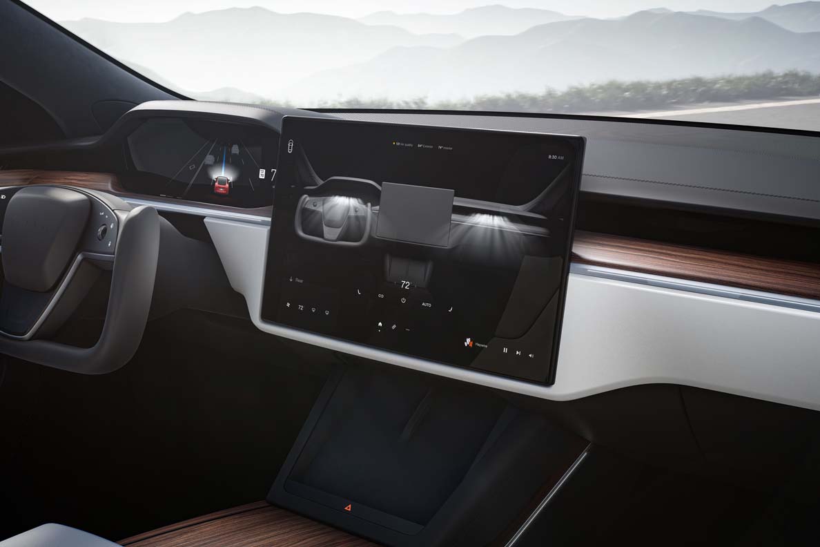 The 17″ center touchscreen seamlessly integrates media, navigation, communications, cabin control and vehicle data into one intuitive interface. Many functions are mirrored on the instrument panel and are voice-activated to focus the driver’s attention on the road.