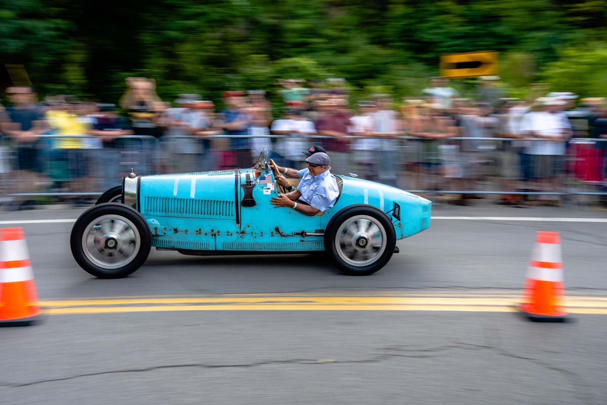 The racing was split over two days at Watkins Glen International, with a large crowd of enthusiastic spectators cheering on the Bugatti legends on the circuit. The experience afforded many of them the opportunity to transport themselves back to a time more than eight decades in the past, witnessing the spectacle that racegoers of the 1920s and ’30s might have enjoyed, watching Robert Benoist, Louis Chiron, Pierre Veyron or Rene Dreyfus wrestle their Bugattis through sweeping bends and powering them down long straights.