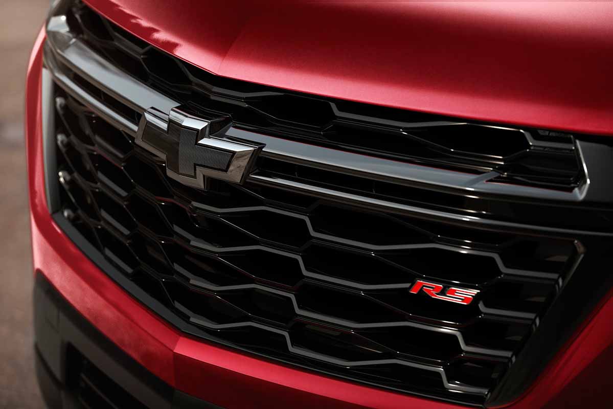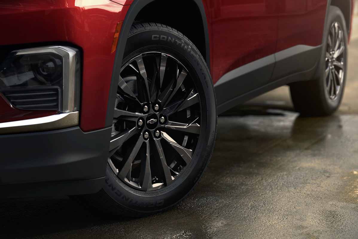 The RS trim features a performance-inspired mesh grille with black Chevy bowtie and unique front splitter elements to define its sporty demeanor, along with 20-inch Dark aluminum wheels. Boosting the visual appeal with black window trim and black roof rails. Powered rear liftgate, front fascia body color, ornamentation of the RS badge, which adds to the visual look. Inside, the Traverse features wireless phone charging.