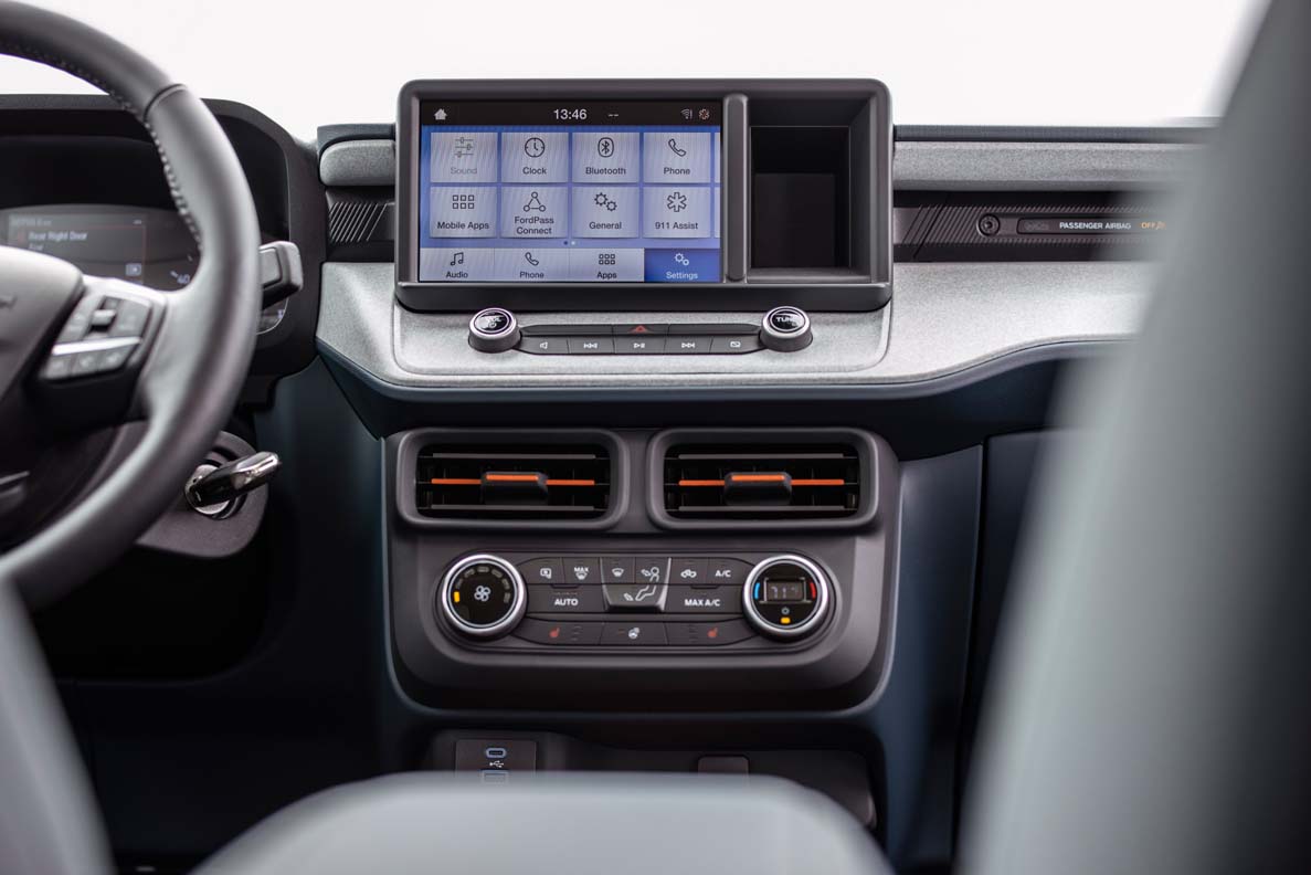 Maverick won’t make its owners run up the bill for a good user experience, offering options for both built-in and brought-in technology. Its standard 8-inch center touch screen features Apple CarPlay® and Android Auto® compatibility so customers can have the experience they’re used to with their phones. Maverick has standard FordPass Connect with embedded modem and Wi-Fi for up to 10 devicesƗƗƗ, while standard FordPass makes it easy to find the truck, check fuel level, lock and unlock the doors, and start or turn off the vehicle – all from your phone.
