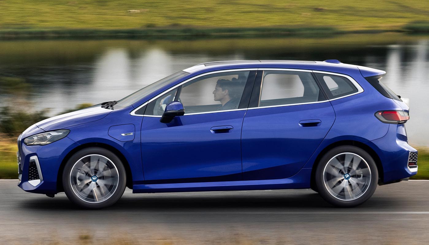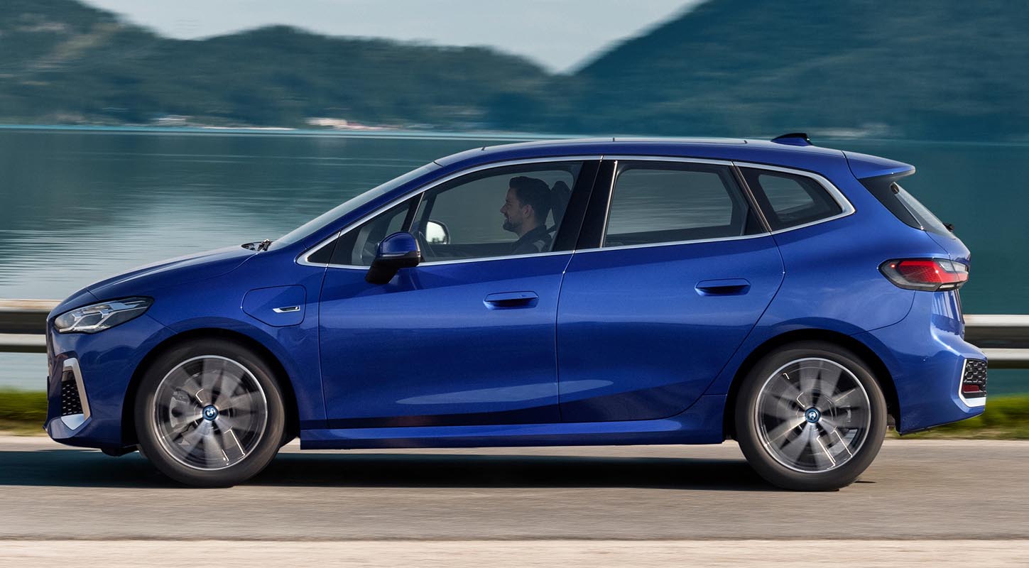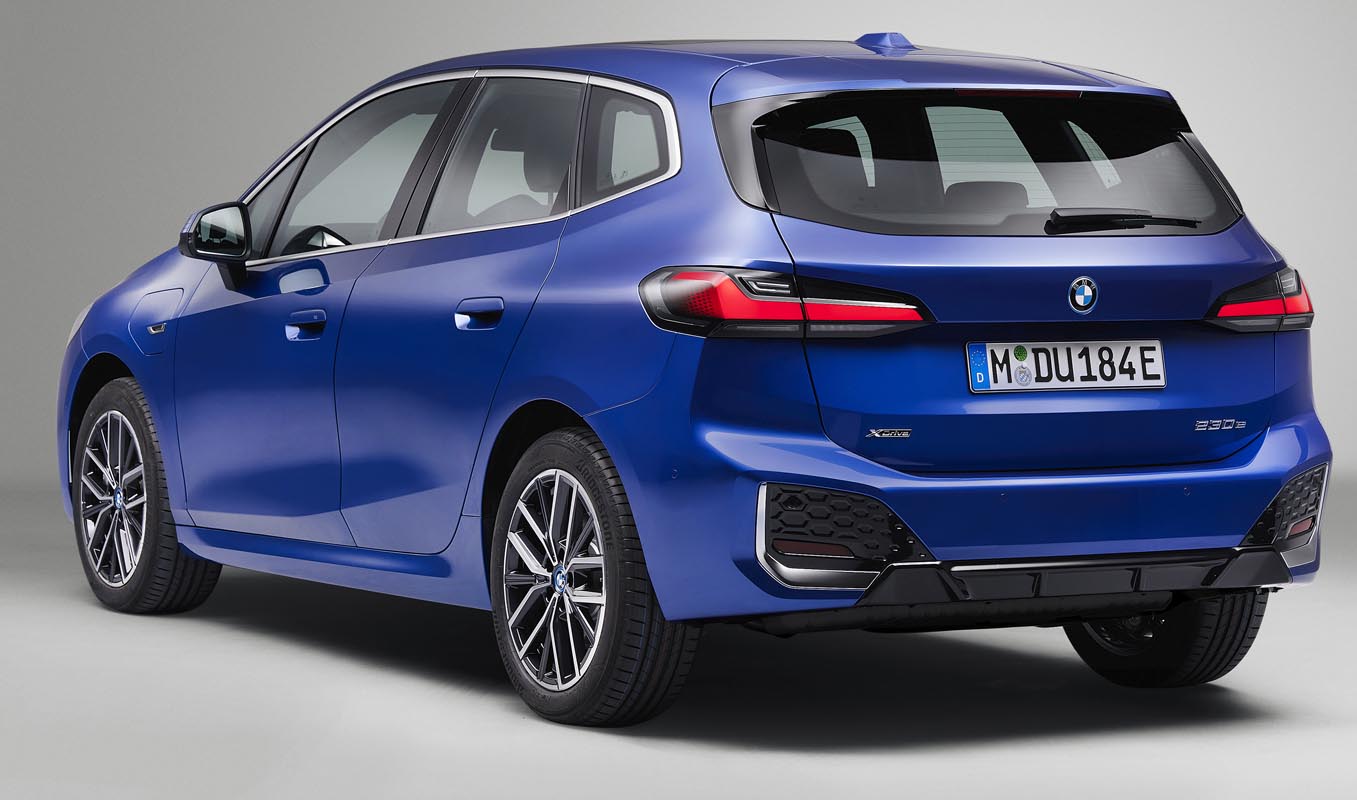 Plug-in hybrid technology provides an even more intense form of electrification in the new BMW 2-Series Active Tourer and is expected to be added in the model range from summer 2022. The launch of the BMW 230e xDrive Active Tourer (fuel consumption combined: 1.4 – 1.1 litres/100 km [201.8 – 256.8 mpg imp]; electric power consumption combined: 20.0 kWh – 17.9 kWh/100 km; CO2 emissions combined: 30 – 22 g/km based on the WLTP cycle) and the BMW 225e xDrive Active Tourer (fuel consumption combined: 1.4 – 1.1 litres/100 km [201.8 – 256.8 mpg imp]; electric power consumption combined: 20.0 kWh – 17.9 kWh/100 km; CO2 emissions combined: 30 – 22 g/km based on the WLTP cycle) will bring two plug-in hybrid models to the line-up, each delivering significant gains in terms of sportiness, efficiency, electric range and charging capacity over their predecessor. This has been made possible using fifth-generation BMW eDrive technology in plug-in hybrid models manufactured by BMW for the very first time. It consists of a current-excited electric motor – installed in a single housing along with the power electronics and transmission – plus the latest battery cell and charging technology. The high-voltage battery stands out with a particularly flat design and is located low down in the underfloor structure. This gives the plug-in hybrid models a low centre of gravity, which has a positive effect on agility.