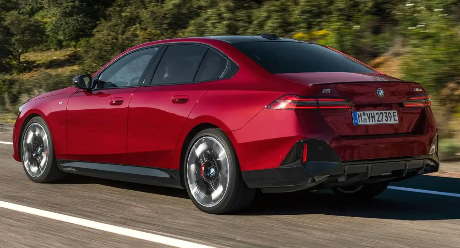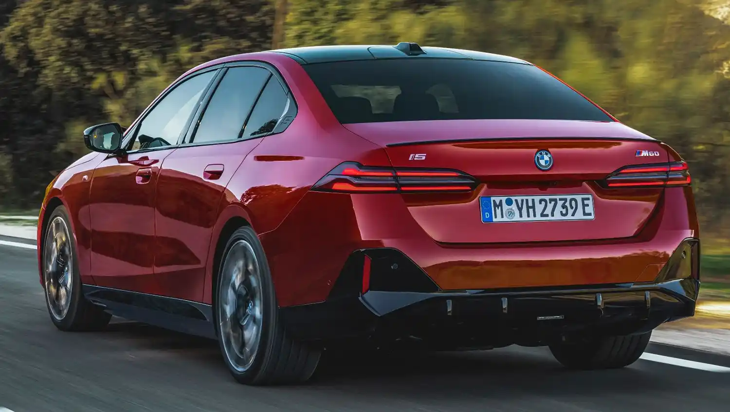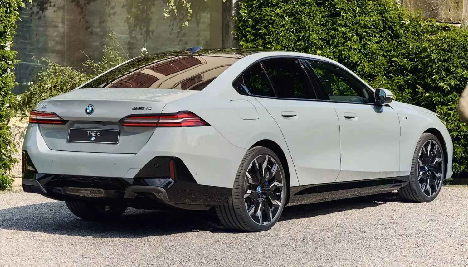 The all-electric BMW i5 is equipped with extensively enhanced fifth-generation BMW eDrive technology and is being launched in two variants. The BMW i5 M60 xDrive (combined power consumption according to WLTP: 20.6 – 18.2 kWh/100 km (62 miles)), which combines an up to 442 kW/601 hp drive with hallmark M performance and specific design features. Two highly integrated drive units on the front and rear axles make up an electric all-wheel drive. The system torque generated is up to 820 Nm (605 lb-ft) when M Sport Boost or the M Launch Control function is activated. This enables the BMW i5 M60 to accelerate from zero to 100 km/h (62 mph) in 3.8 seconds, its top speed is electrically limited to 230 km/h (143 mph).