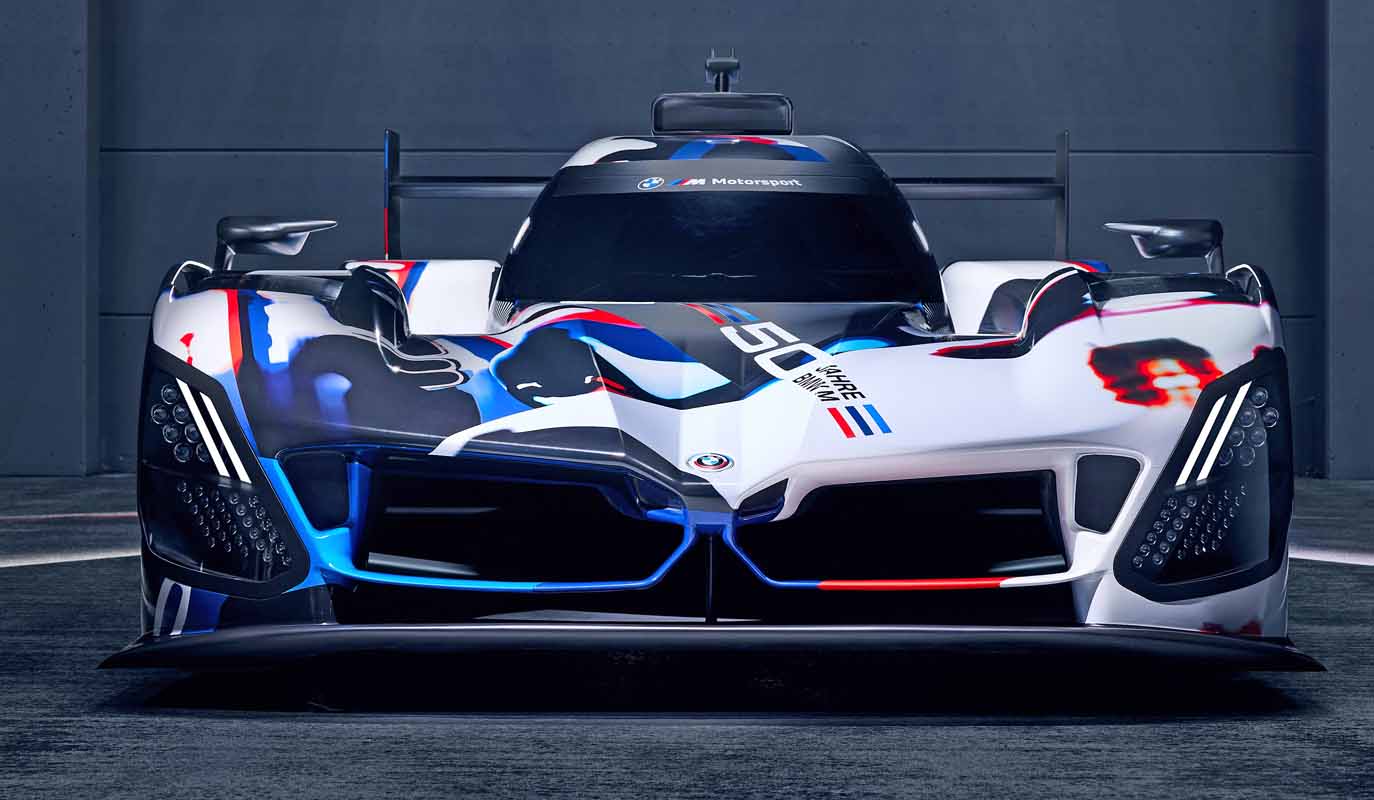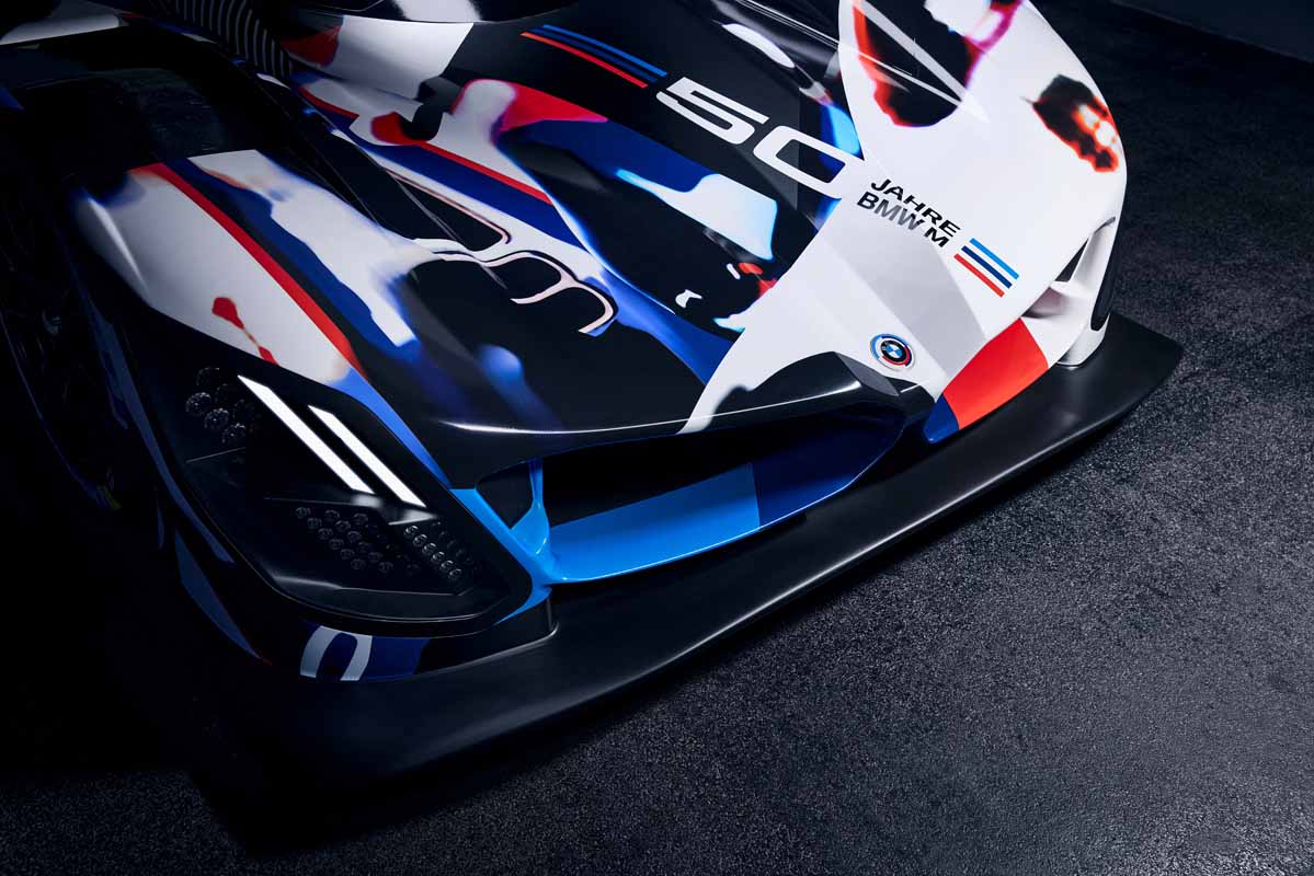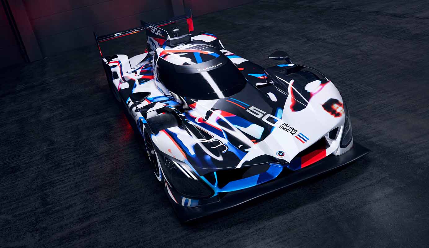 “My team’s job was to make the BMW M Hybrid V8 look like a BMW, and embrace every opportunity to make it also perform like one on the race track,” said BMW Group Designworks Global Automotive Director Michael Scully. “The design is rooted in BMW’s DNA of purposeful, efficient performance, and the exterior’s bold, determined character invokes BMW’s frontiersmanship of turbo power, now united with an optimised hybrid electric powertrain. The camouflage livery celebrates the 50 Years of M by commemorating the great cars of BMW’s storied history in IMSA racing while uniquely cloaking the BMW M Hybrid V8’s future-facing exterior geometry and technologies during the critical on-track development phase of the project. If you look closely you’ll discover multiple winners of the Daytona 24 Hours, as well as the very first purpose-built IMSA GTP car from 1981, the BMW M1/C. We’ll follow-up this camouflage with a works livery that exemplifies the dynamism and excitement of hybrid electric-powered competition.”