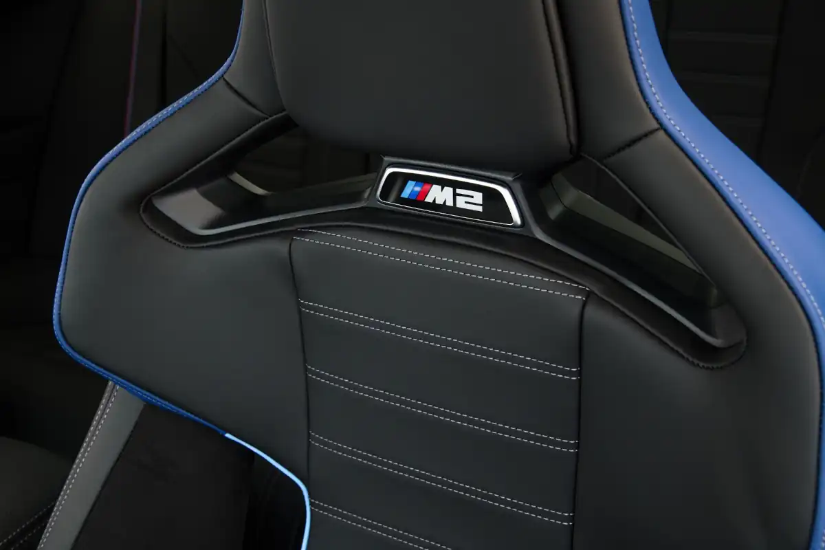 The standard sport seats in the new BMW M2 provide both excellent long-distance comfort and notable lateral support when powering through corners. Their design includes model-specific touches in the form of the Sensatec/Alcantara upholstery for the seat surfaces and the embossed “M2” badge at the top of the backrest. They can be optionally specified with seat heating as well as electric adjustment for the seats’ fore/aft position, tilt and . The driver’s seat also gets electric backrest width and angle adjustment, complete with a memory function.