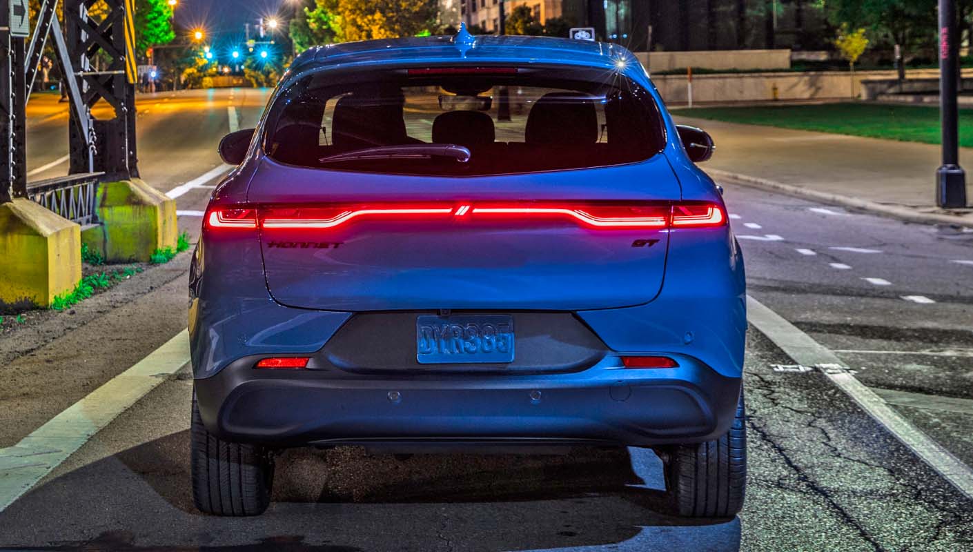 At the rear, the Hornet’s Dodge identity shines through. The taillamp extends the width of the vehicle and features a lighted red signature, as well as an illuminated Dodge Rhombi logo in the center — featured for the first time on a Dodge vehicle — identifying from a distance that it’s a Dodge. The illuminated taillamp and Rhombi logo, while standard on the Hornet, also serves as a subtle nod to the electrified performance of the Hornet R/T PHEV model.