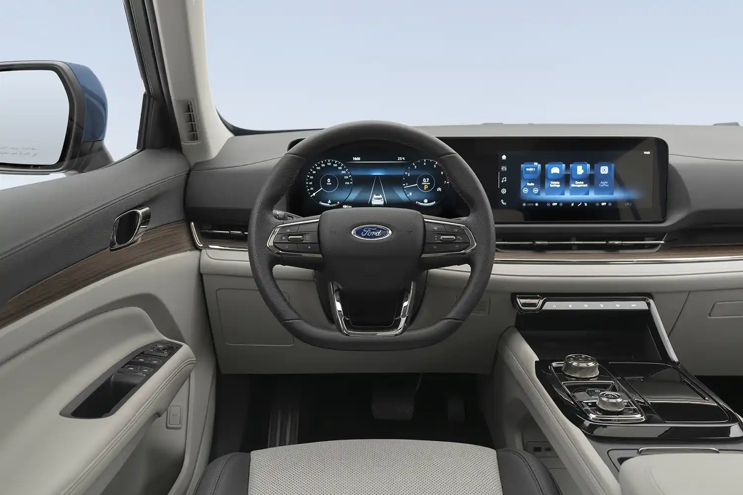 Smart technology is at the heart of the all-new Ford Territory experience. Minimalist design touches have been applied to the center area with a large 12-inch central touchscreen, spread to the sides, incorporating either a seven-inch (Ambiente and Trend models) or 12-inch (Titanium) digital speedometer display to support the driver with easier command over all functions while ensuring they remain focused on the road. With limited physical buttons, the central console is highly appreciated by drivers for the practical experience it offers. The E-Shifter has been innovated to rotary, showing the modernity and suitability for customer tastes.